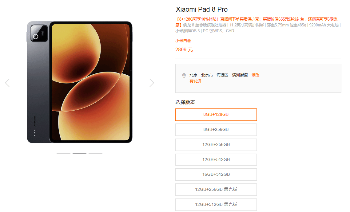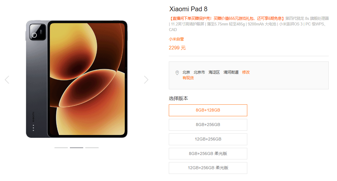 具体来看,定位中高端的小米平板 8 起售价从原先的 2199 元上调至 2299 元。其升级版小米平板 8 Pro 的起售价则由 2799 元调整至 2899 元。