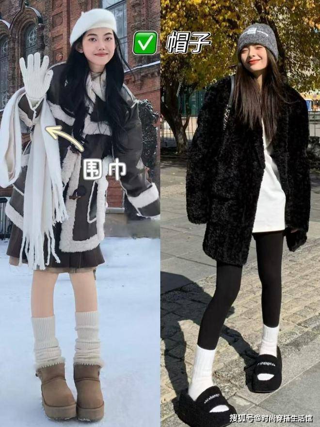 具体方法就是上半身可以选择体积较大的衣物,如羽绒服或宽松大衣,而裤子则选择紧身设计。通过“上宽下窄”的搭配方法来平衡整体形状,避免全身上下过于臃肿,从而展现出轻快的时尚气息。