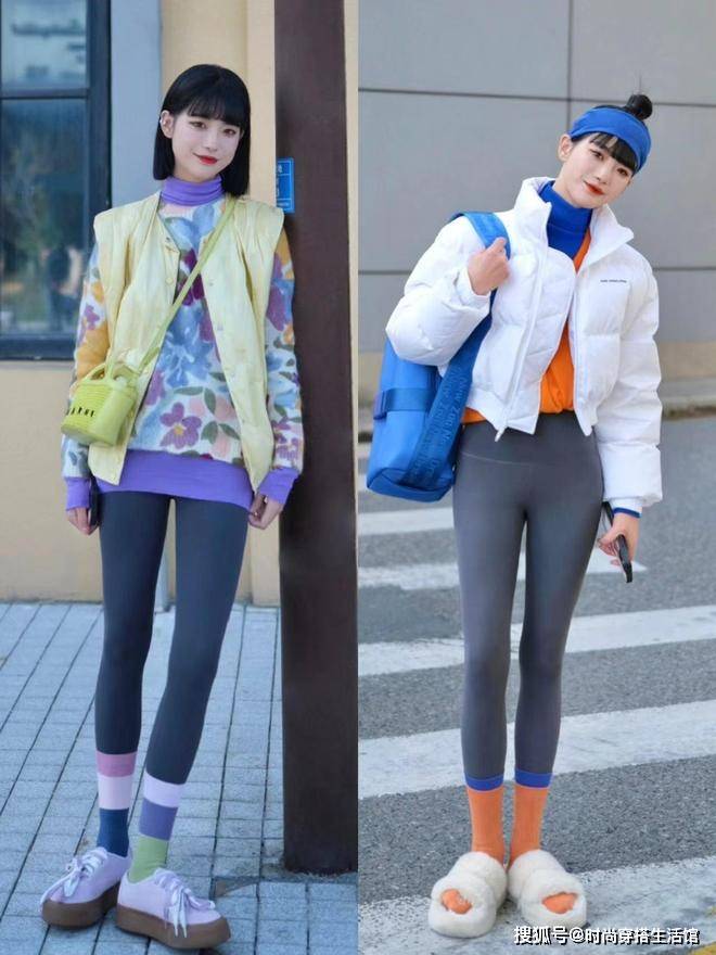 ⑴裤子单穿会单调,袜子裹裤子更时髦保暖