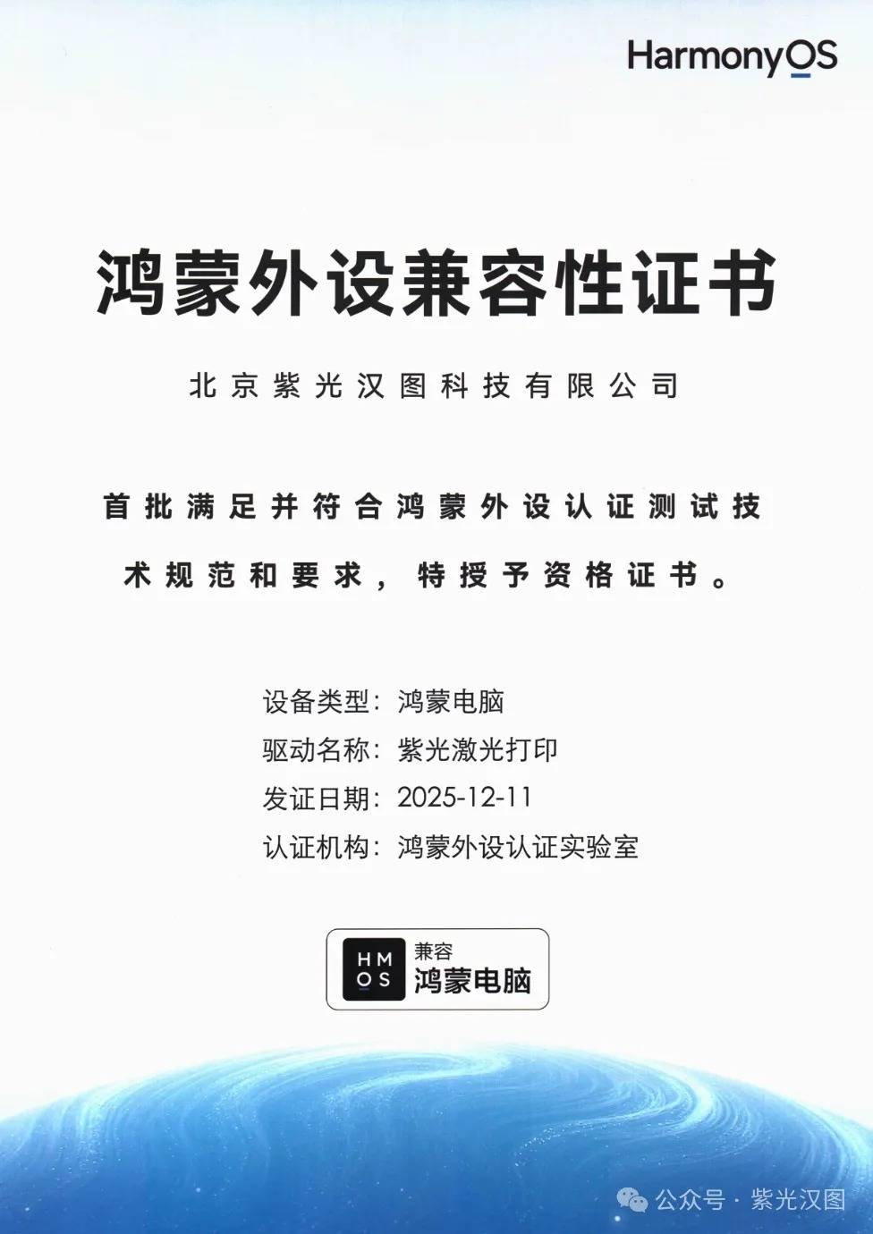 近日,由华为主办的“鸿蒙办公产业峰会”在武汉召开,标志着鸿蒙操作系统正式全面进军商用办公领域。国产打印创新企业紫光汉图受邀参会,并凭借完全自主研发的原生驱动技术,成为首批荣获“鸿蒙外设兼容性证书”的品牌。