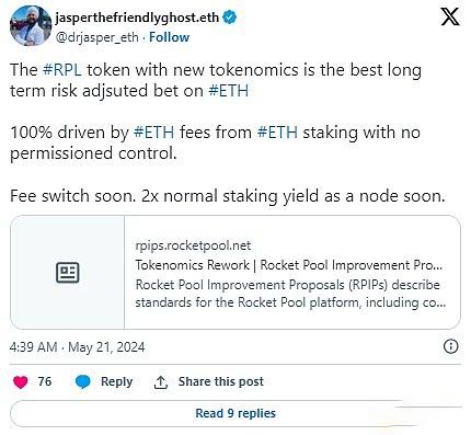 Lido 的治理代币 LDO 因 ETF 批准的传闻上涨了约 25%,这表明尽管市场份额有所下降,该协议及其 LST、stETH 在生态系统中仍然不可或缺。虽然 EigenLayer 的再质押推动有可能改变质押格局的权力动态,但 LDO 和 RocketPool 的 RPL 等竞争对手仍然在努力追赶。
