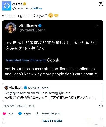 在更广泛的市场游戏和 Vitalik 的支持下,以太坊名称服务的治理代币 ENS 已经上涨了 50%。Vitalik 质疑为什么更多的人没有关注他所谓的以太坊最成功的非金融应用程序。