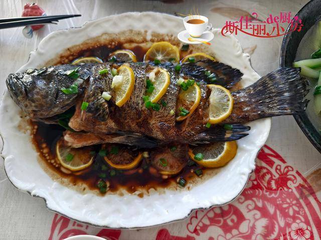 第一道菜: 柠檬蒸老鼠斑,待客的餐桌上怎能少得了鱼呢? 对于鲜活的鱼最受欢迎的做法莫过于蒸了,简单又好吃,这次选用了老鼠斑,看着家里还有一个柠檬, 蒸好用它来调味去腥, 蒸鱼好吃的关键在于把握火候,火候一过鱼肉变老就不好吃了,8分钟左右成熟,蒸好的鱼肉嫩鲜甜,配合蒸鱼豉油的鲜香和葱油的清香,吃起来真的很鲜美。