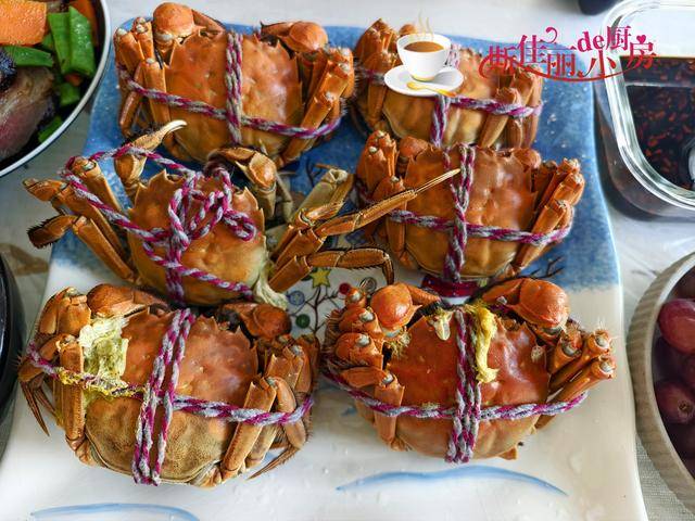 制作过程:将螃蟹在流水下用牙刷冲洗干净,再将其捆好,将处理好的螃蟹正面朝下放进蒸锅中,加盖开火, 大火蒸上12-15分粥, 将其蒸熟即可。 小碗中加入少许生抽、香醋和姜末,再加入少许糖,放入微波炉打上2分钟,将其拌均匀完全融化即可,再将蘸料一同上桌。