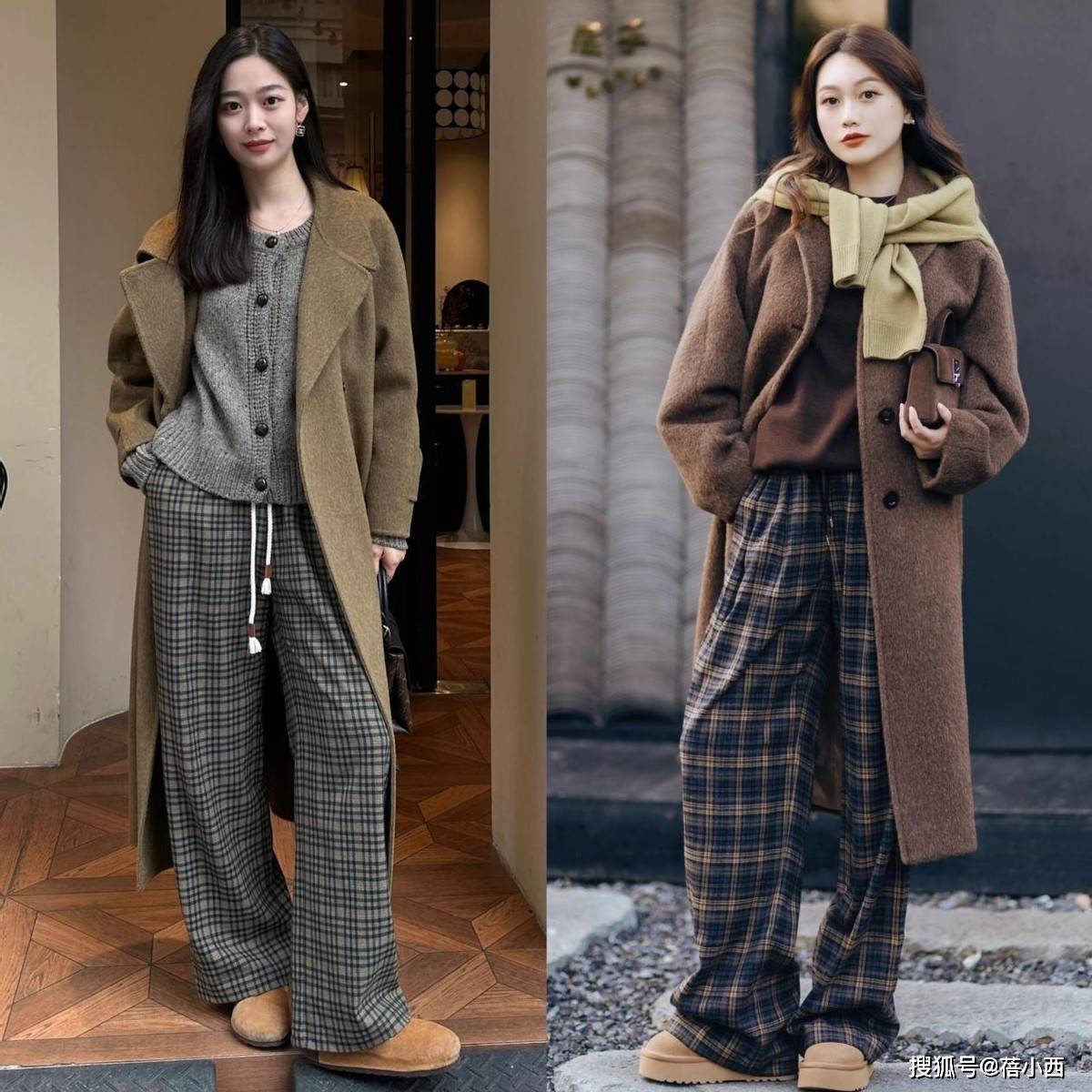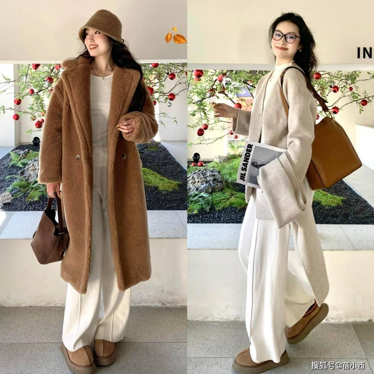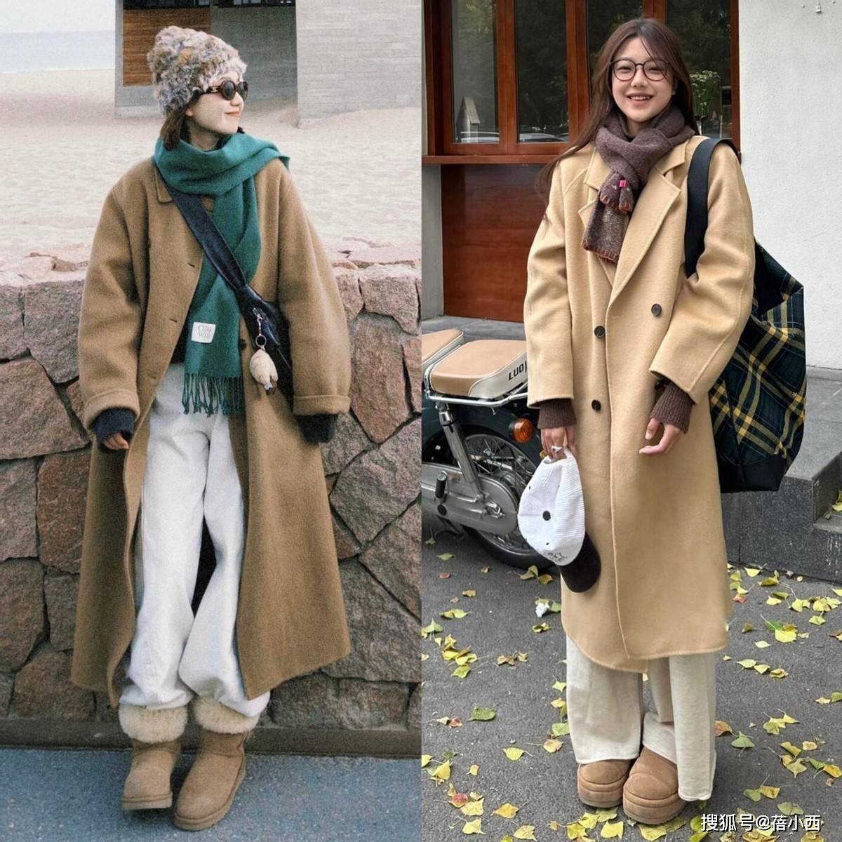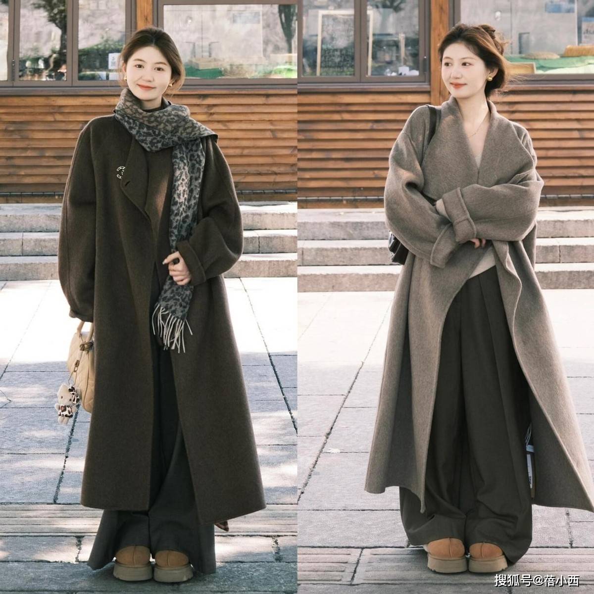 奶茶雪地靴可是冬日保暖党的福音,今年的流行款更是告别了传统雪地靴的臃肿感,大多数都是鞋型收窄、鞋头圆润,3厘米左右的厚底款,穿起来增高又不累脚。搭配廓形大衣时,配浅色阔腿裤,裤脚自然垂落盖住部分鞋帮,能视觉上拉长腿部比例,小个子也能穿出利落感。