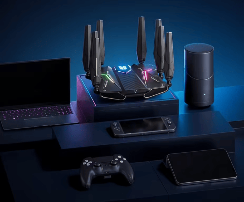 为迎合电竞玩家需求,产品拥有专属电竞级彩色 RGB 灯效,超 1600 万种颜色变化。为保证长时间高负载运行的稳定性,其内部拥有高达 86904mm² 的散热面积,并采用 8 根天线 + 8 颗 FEM 设计。