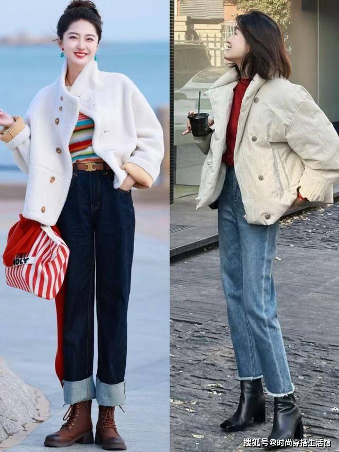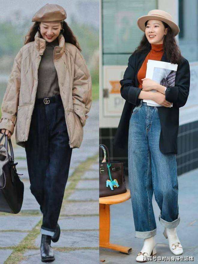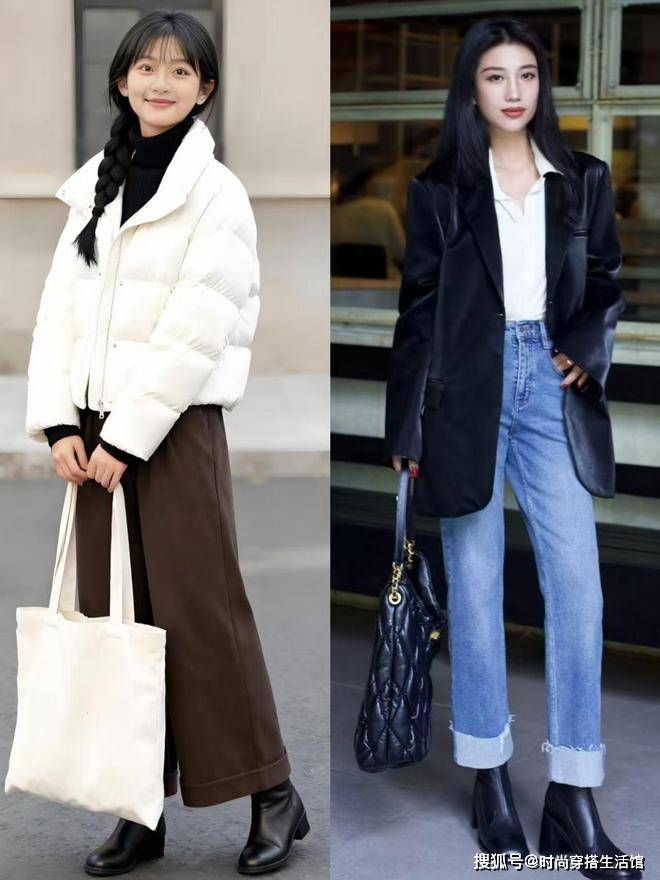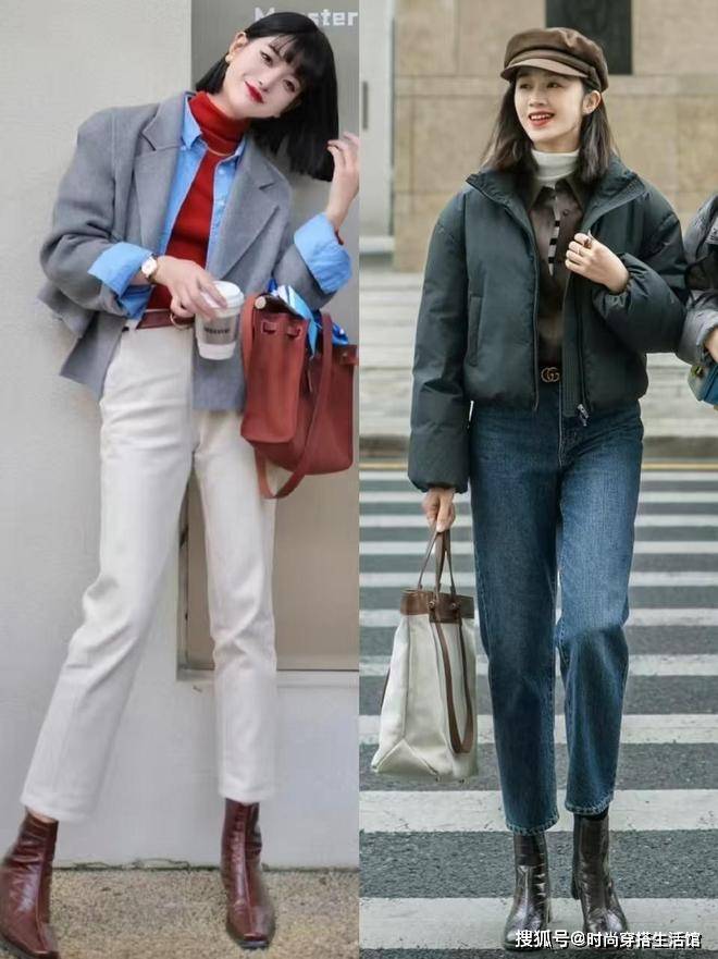 原因⑴九分裤搭配短靴遮住脚踝,轻松保暖