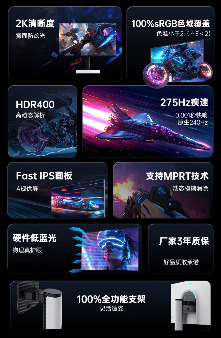 据悉,该显示器拥有丰富的接口,包括 2 个 DP1.4 接口、2 个 HDMI2.0 接口、1 个 USB 接口、1 个 3.5mm 孔和 1 个 DC 接口。搭配旋转升降俯仰支架,支持上下升降、竖屏旋转、左右旋转和前后俯仰。但官方未给出音箱具体参数。
