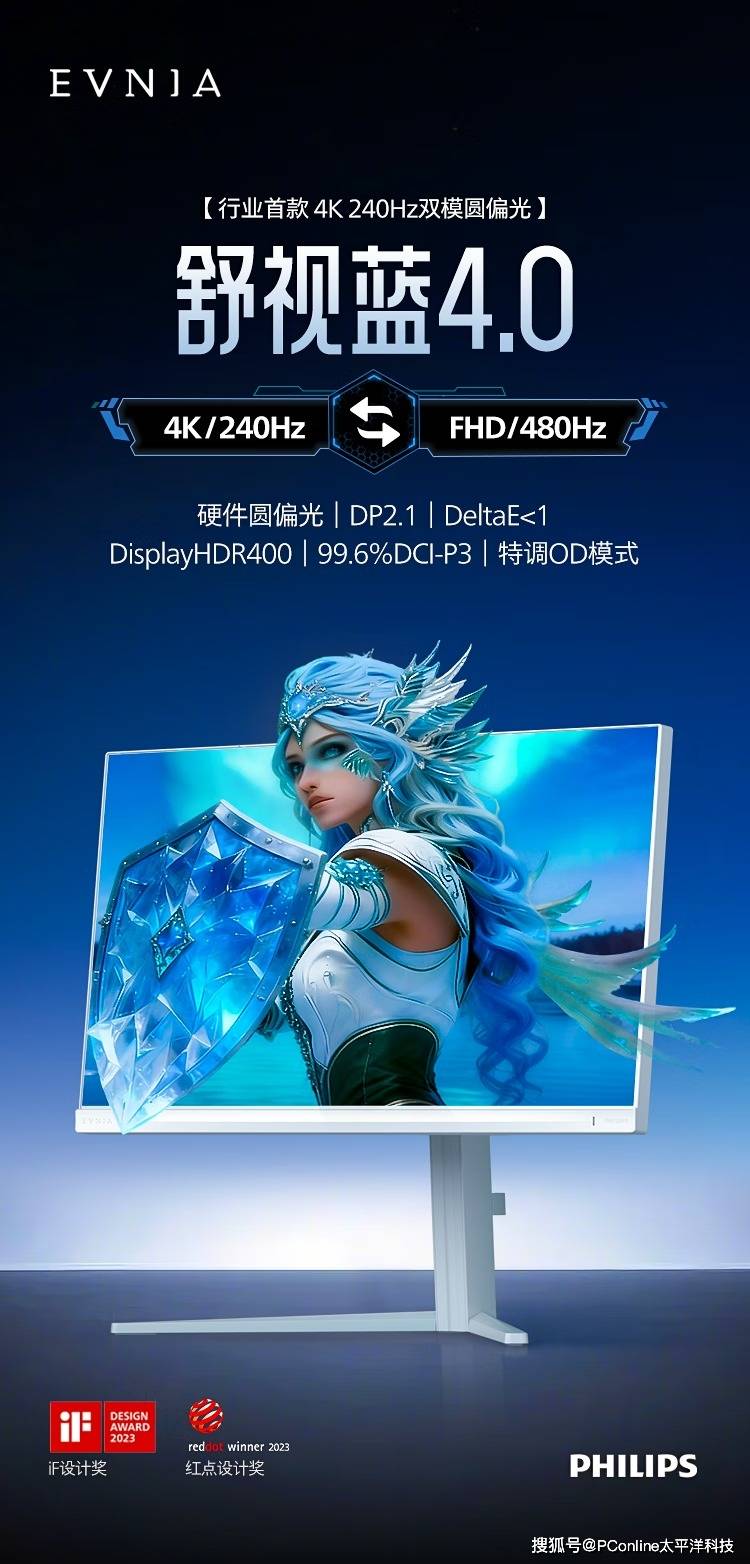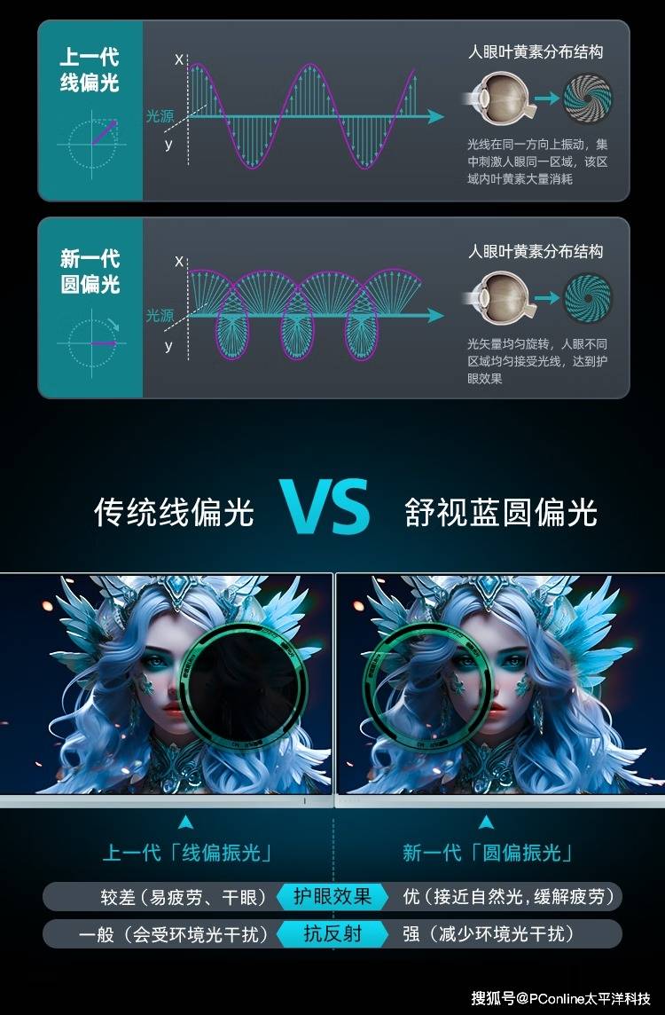 27M2N5801PK是行业首款4K 240Hz双模圆偏光显示器,而圆偏光正是其“舒视蓝4.0”技术体系的核心基石。这并非仅仅是一个营销词汇,而是EVNIA联合面板巨头京东方(BOE),试图从物理层面改变光的形态。