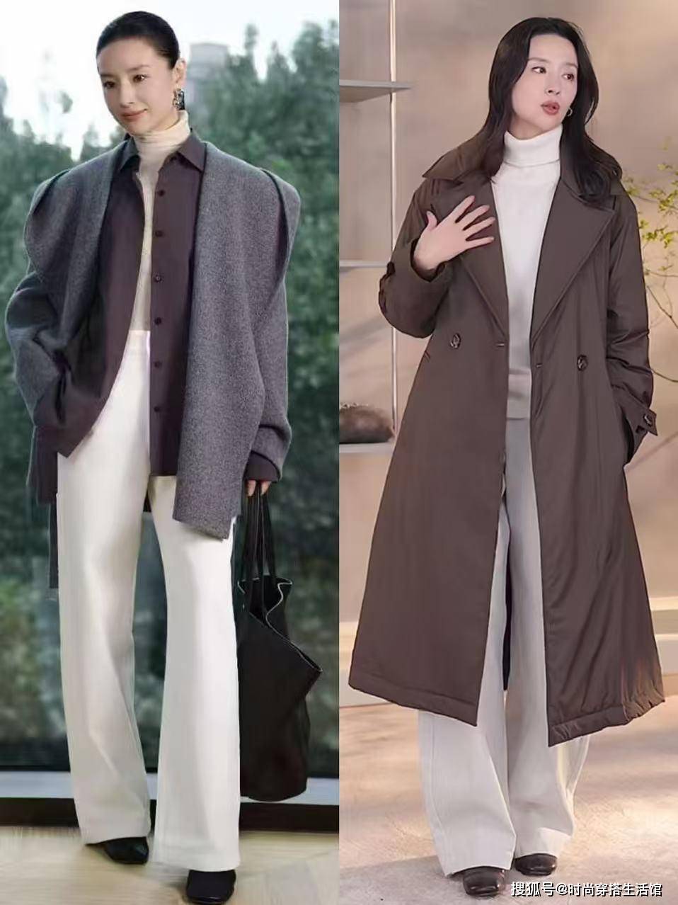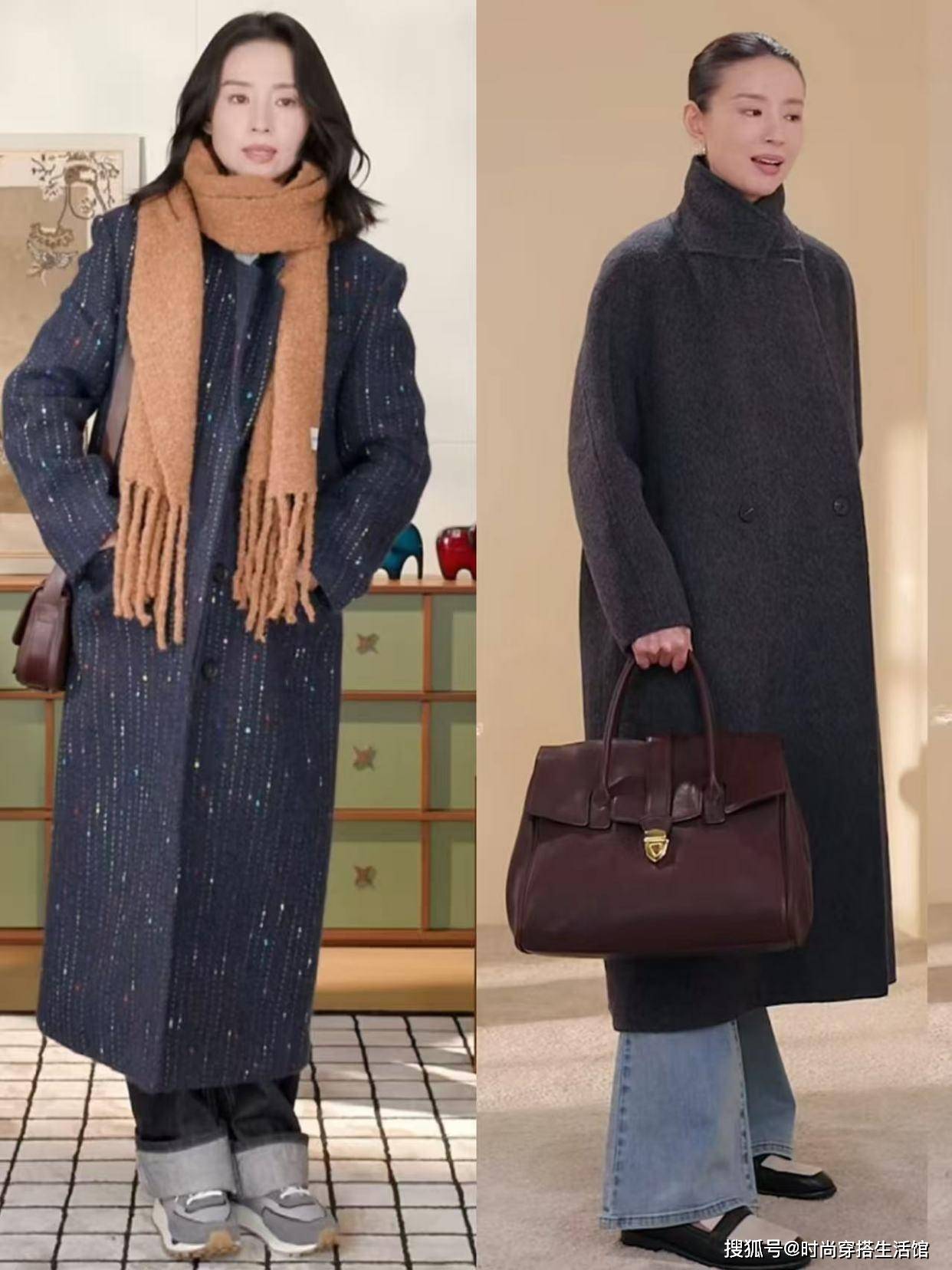 尤其是提到秋冬季节常见的大衣,其实我们很容易陷入固定的穿搭模式,像是怕冷的女性穿大衣就喜欢大衣无痕裤、不配冷的女性就喜欢光腿穿大衣,自以为这样的搭配方式时髦高级,殊不知丢了风度和温度,其实对于冬天来说大衣如何穿出高级感,我们可以看到董洁的穿搭方式,把温度和风度兼顾得刚刚好。