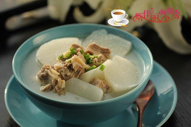 4. 待到时间到。”白萝卜羊肉汤“就炖煮好后,加入少许盐和胡椒粉调味,盛入钵中,撒上少许葱花即可。