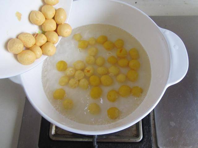 3. 烧锅水,水开后将准备好的南瓜小汤圆放入锅中去煮;