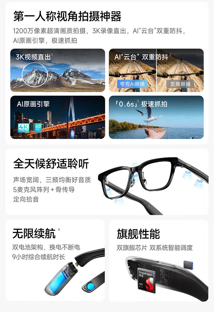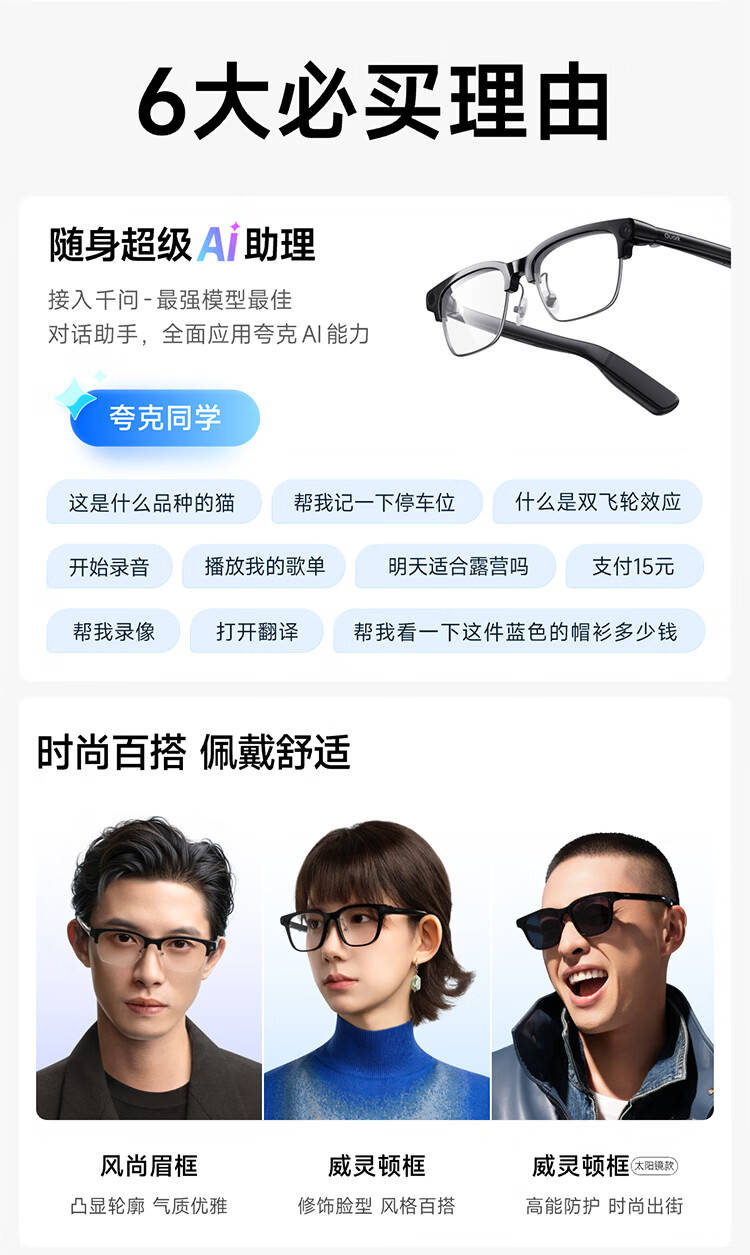 此外,该眼镜深度集成“夸克同学”AI 助理,具备智能问答、录音纪要生成、实时随身翻译等多项 AI 功能。