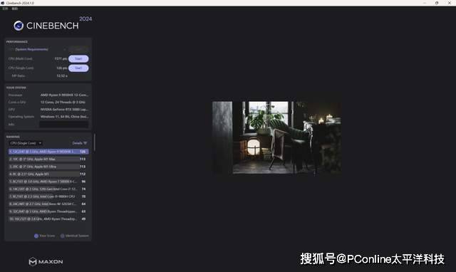 在CINEBENCH 2024中,单核性能126pts,多核性能1571pts;