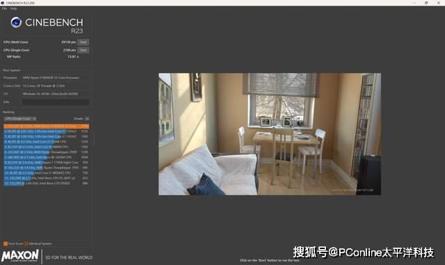 在CINEBENCH R23中,单核性能2100pts,多核性能29130pts;