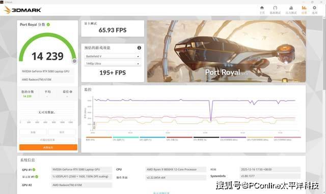 代表光线追踪性能的Port Royal测试得分14239分。