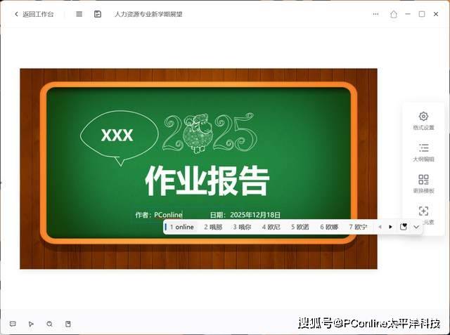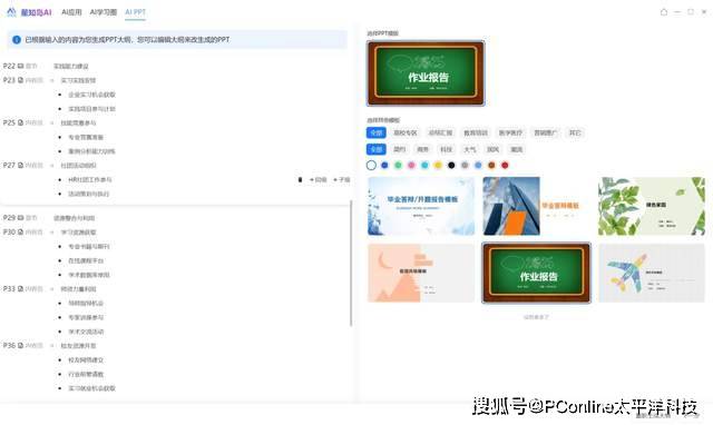 之后在右侧选择模板,便可根据大纲自动生成PPT初稿。