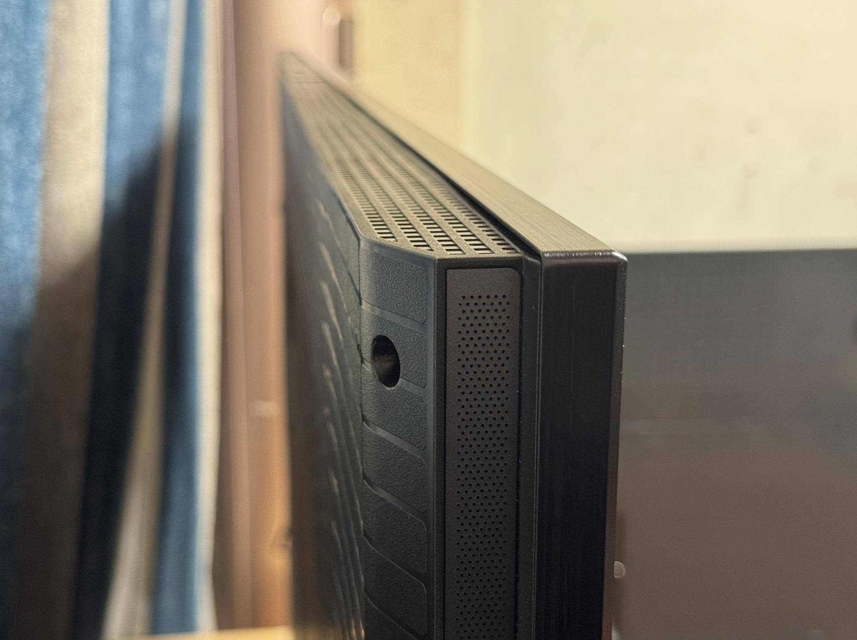在E8S Pro底部中间,海信单独做了一个MOVIE | GAMING的标识,诠释了E8S Pro的定位,这显然是为影音用户和游戏玩家准备的一款高端产品。需要再次说明的是,我们手头的E8S Pro和零售的版本在配置上有一些区别,包括遥控器,大家可以通过我们之前U7S Pro的测试,了解海信“灵指遥控”功能以及更多外形上的特色。