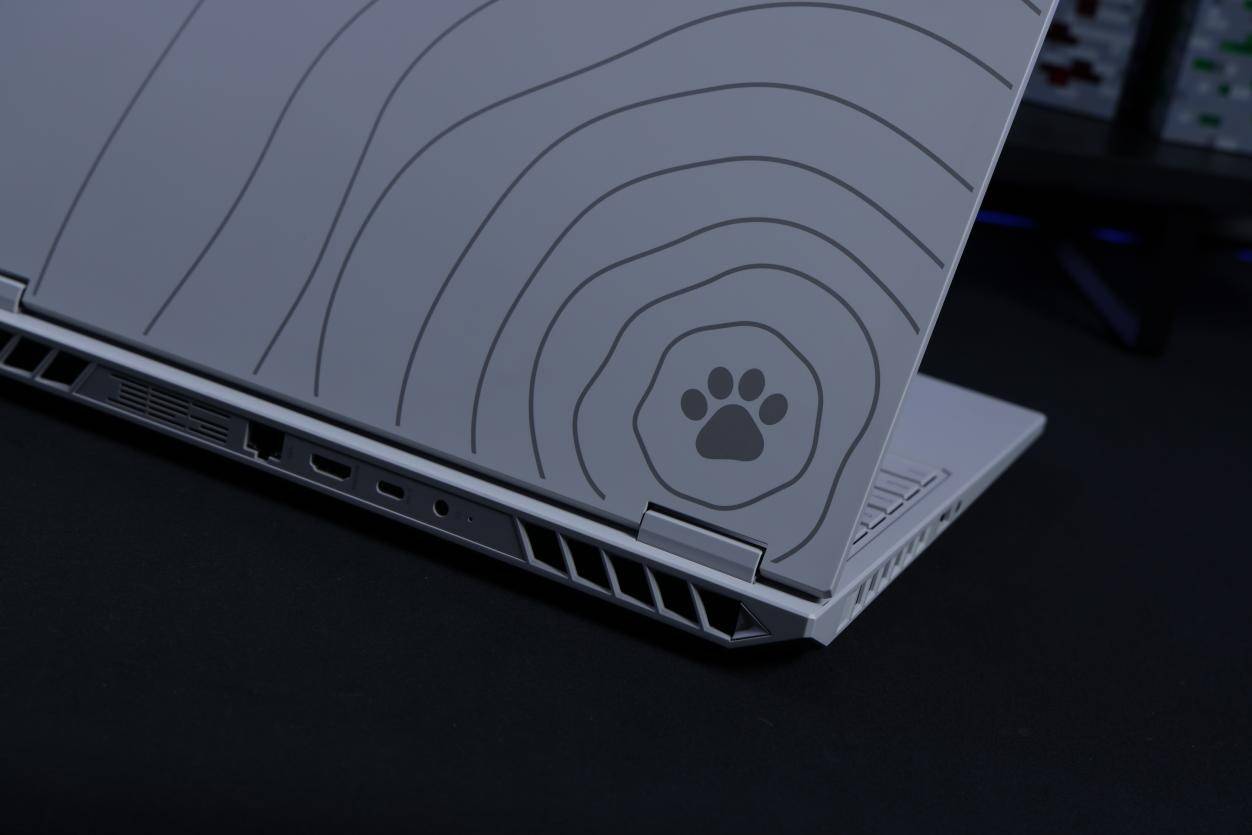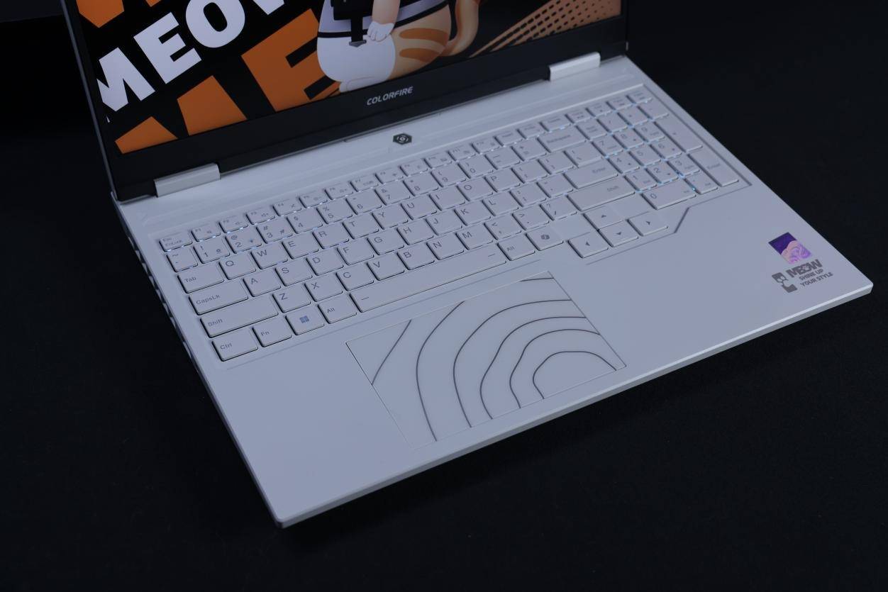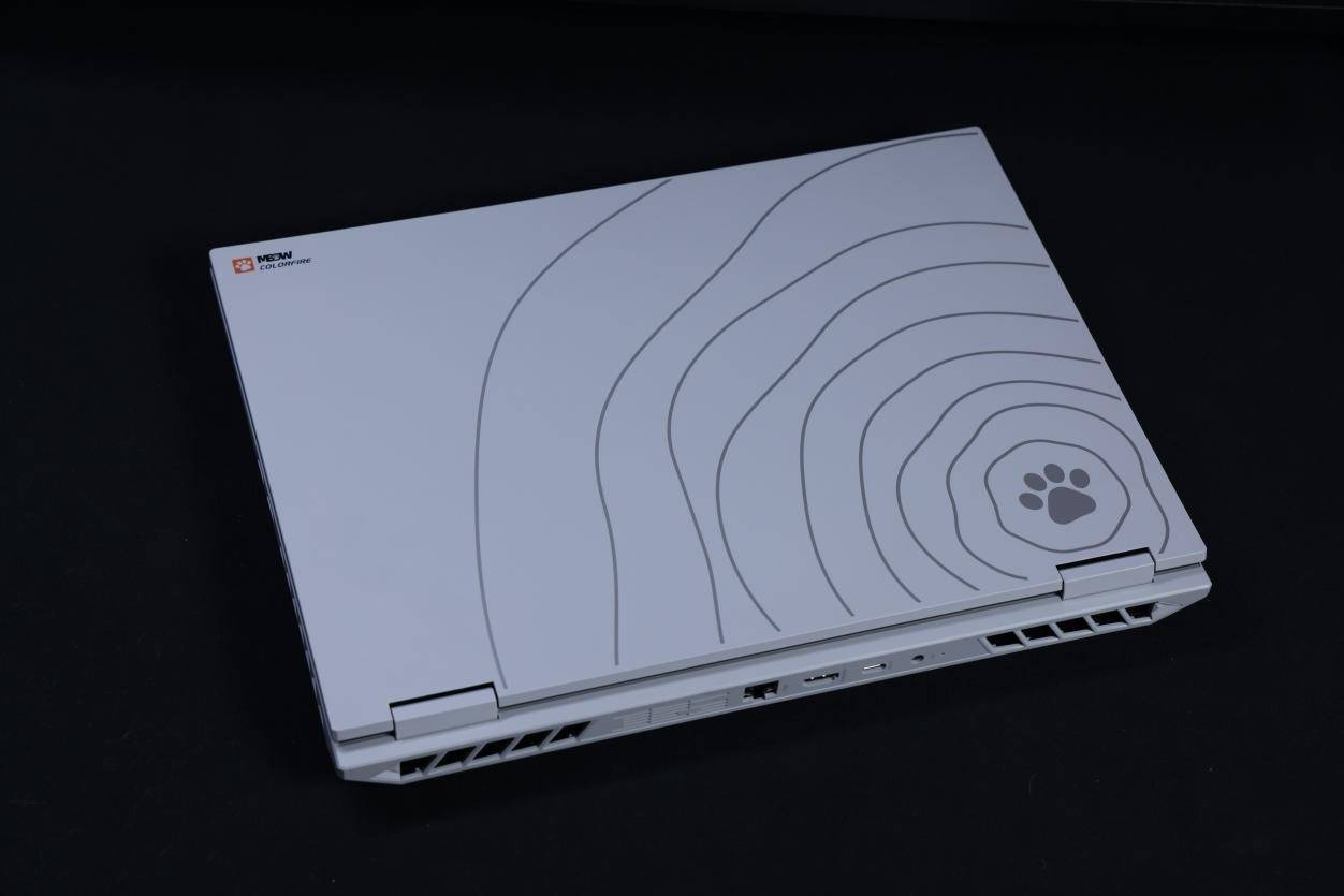 七彩虹COLORFIRE MEOW R16 Pro依旧沿袭了猫元素的家族式设计语言,是在游戏本中独树一帜的“萌系”产品。机身的A面与C面升级为了全白色,键盘区域、键帽等也都为白色,如果忽视掉正常使用时看不到的D面,那么七彩虹COLORFIRE MEOW R16 Pro就是正儿八经全白配色的机型,并非黑白相间的“熊猫色”了。