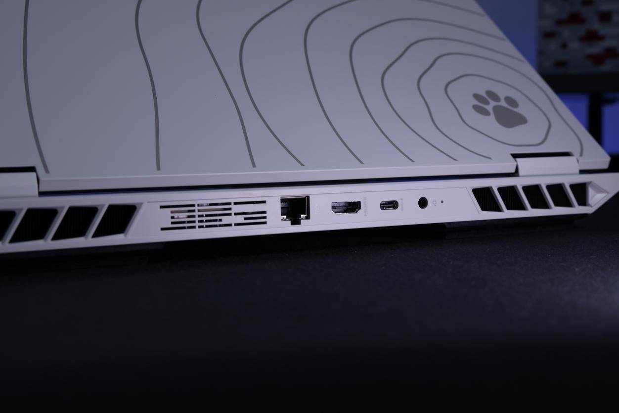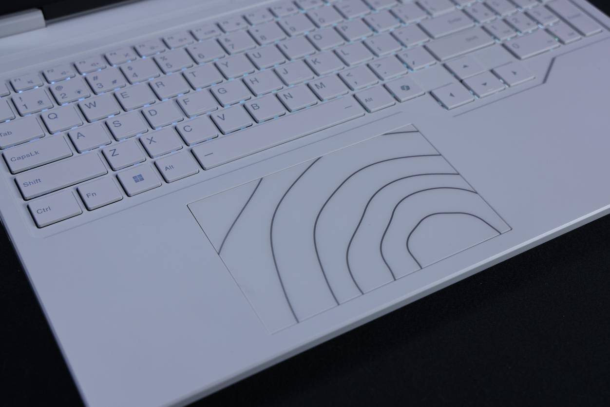 整机虽然采用了游戏本常用的塑料材质,但是这次MEOW R16 Pro在机身表面的打磨上应该是下了更大的功夫,精细丝滑的磨砂手感对于一台需要长时间高负载运行的游戏本来说绝对是一个加分项,在游戏时能够更加保证掌托位置清爽不粘腻,并且无论是在视觉上还是触感上,都一定程度上减轻了整机的塑料感。