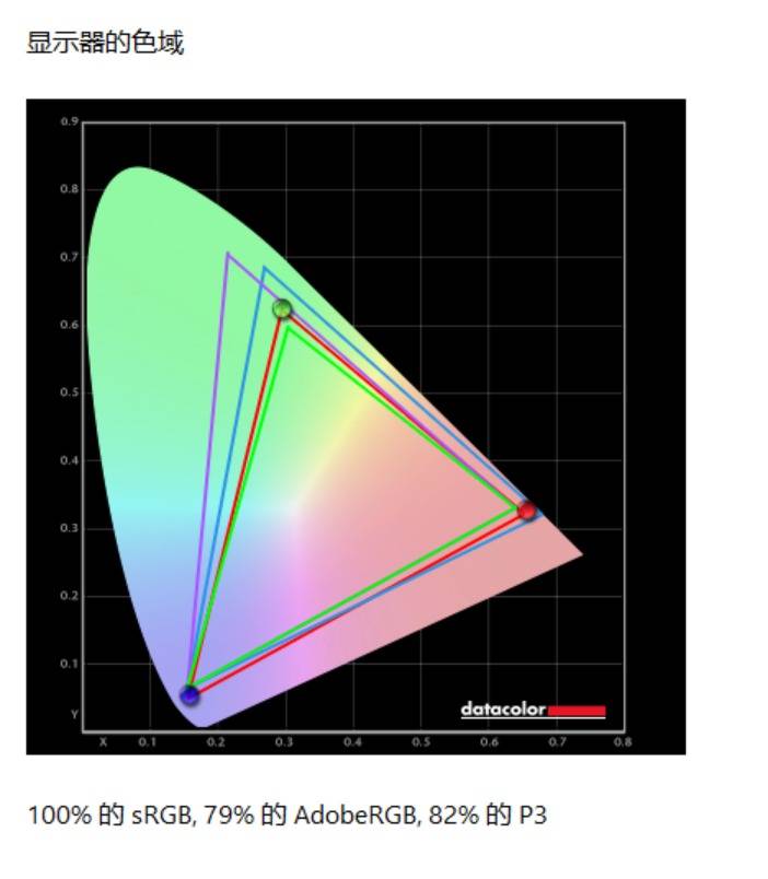 通过Spyder XElite的实测,这块屏幕覆盖色域100%sRGB,最大亮度达到573nits,平均色准ΔE为0.8,符合对此屏幕的宣传,屏幕素质出众。