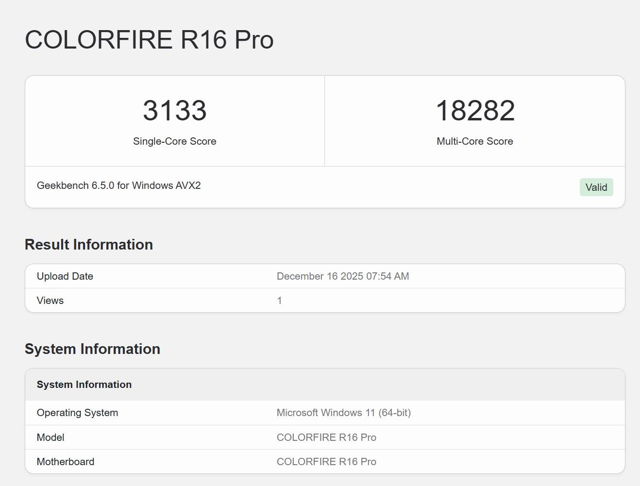在Geekbench 6中,单核性能3133,多核性能18282;
