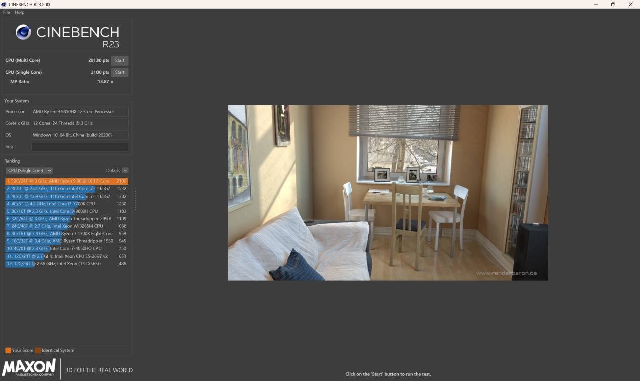 CPU:AMD锐龙9 9850HX;
