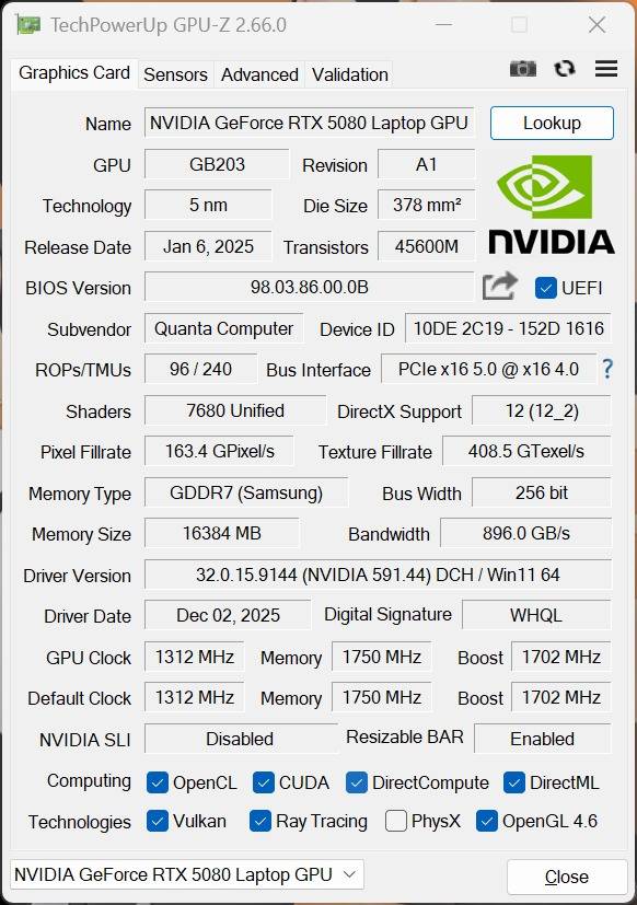 GPU:NVIDIA GeForce RTX 5080 Laptop GPU;