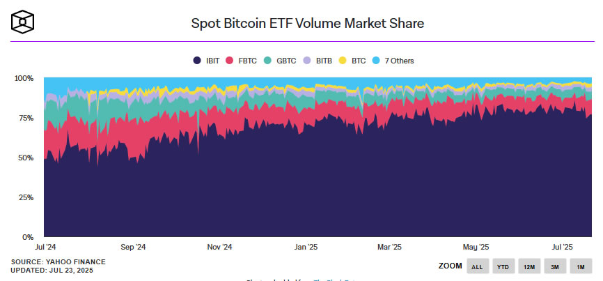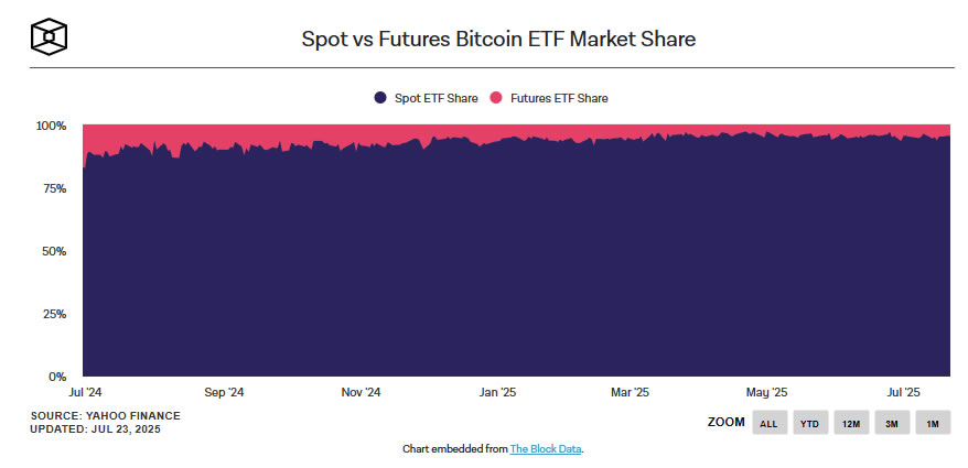 从市场结构来看,ETF目前在现货交易量中占据着主导地位。数据显示,到2025年中期,美国现货比特币ETF的总交易量将超过1万亿美元。这一交易量,不仅表明了市场的成熟度,也体现了传统金融对比特币的接受程度。