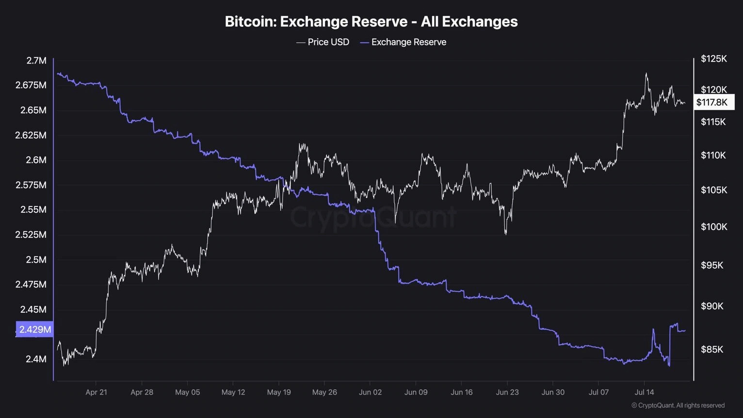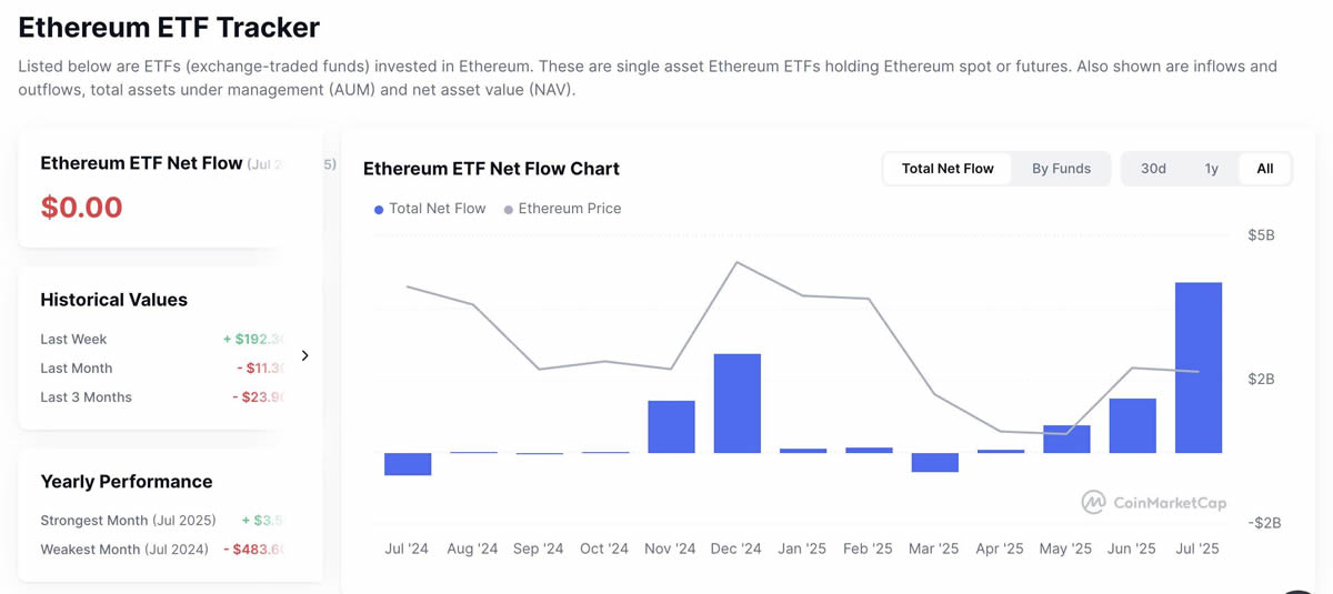更值得关注的是比特币在2025年的表现。截至7月中旬,比特币价格已经突破了12.3万美元,自同年4月以来上涨了近65%。仅2025年,ETF流入就达到了148亿美元,这充分说明了机构的需求已经超越了散户主导的周期。一个典型的例子是,当ETF吸引了11.8亿美元的资金流入时,比特币价格飙升至11.8万美元以上,引发了空头踩踏,加速了价格上涨。