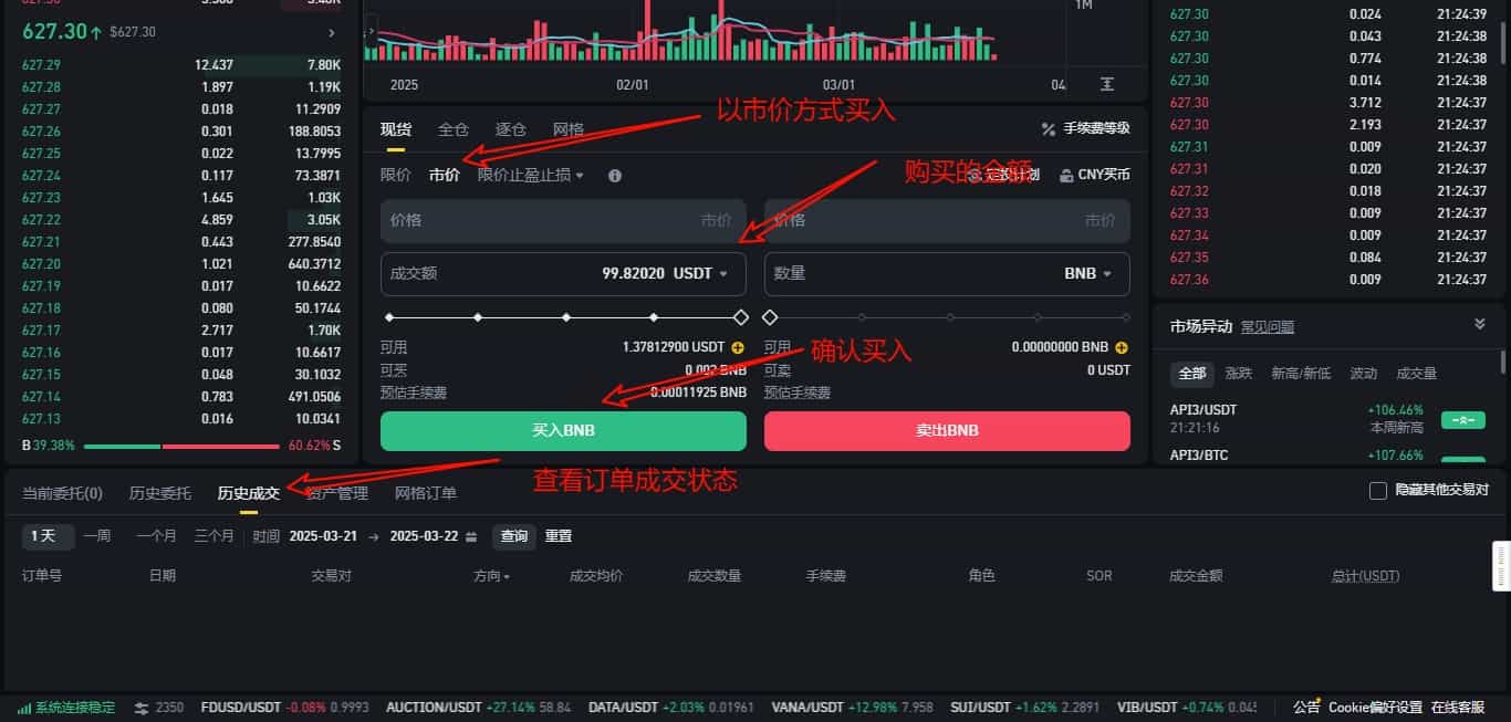 进入“一键买币”页面,选择支付方式,输入金额后系统会自动匹配卖家。确认订单后,向卖家转账并点击“已付款”,卖家会释放法币到你的账户,整个过程由平台担保。