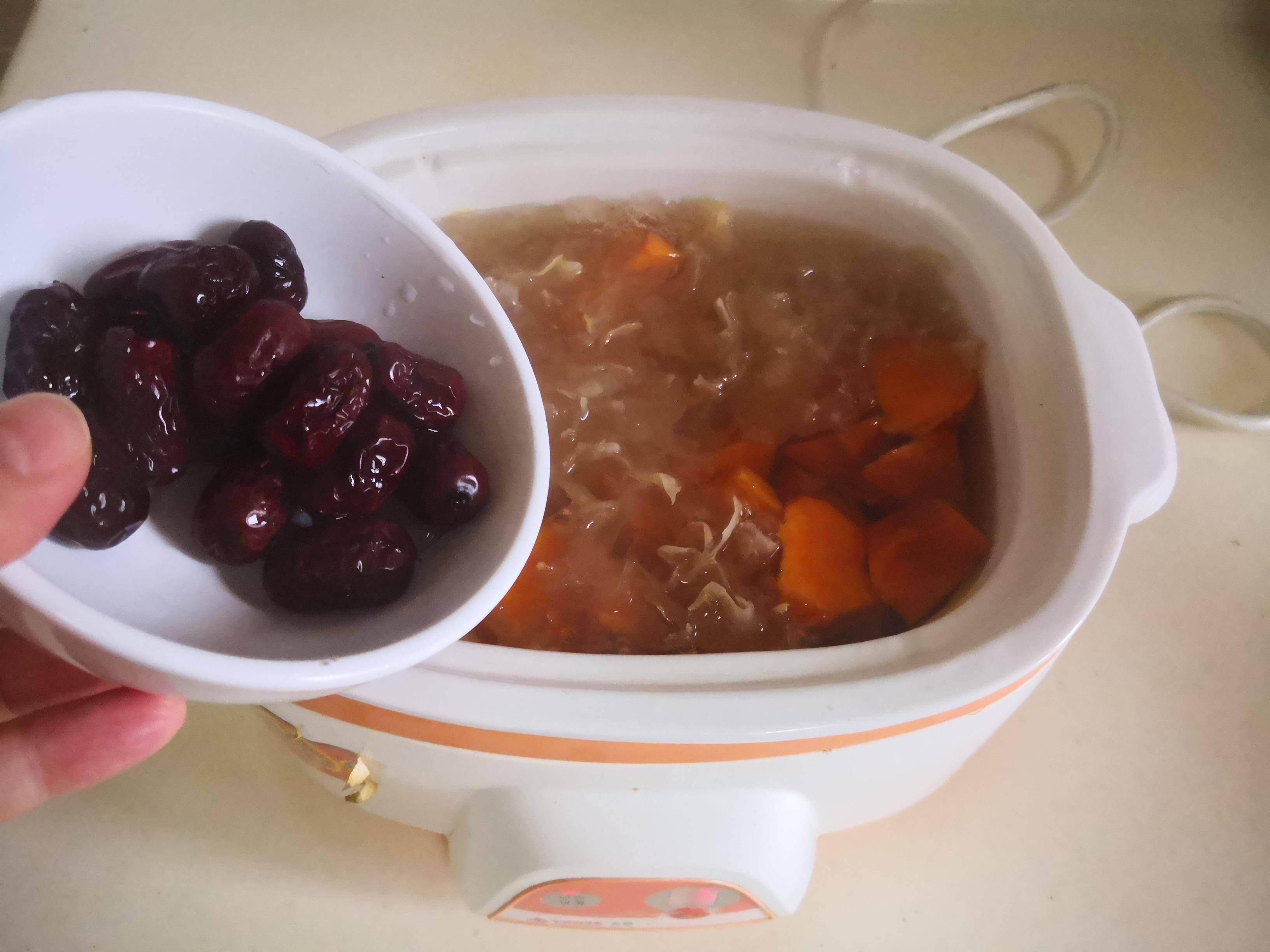 原料: 银耳 1小朵 红薯 1个 红枣 1把 冰糖 适量