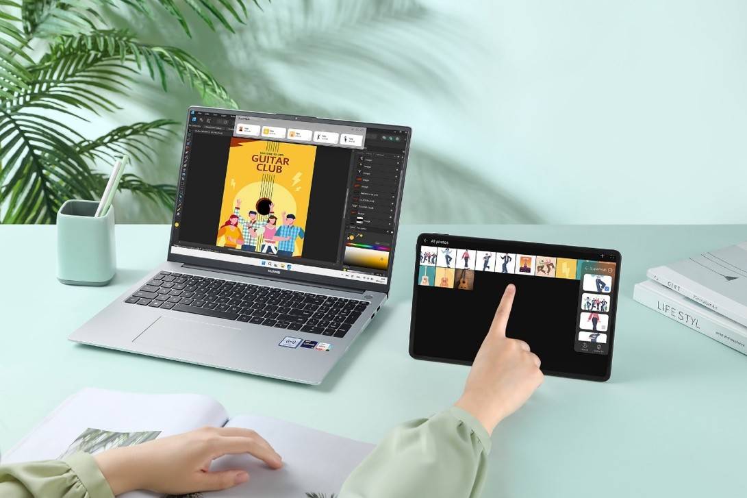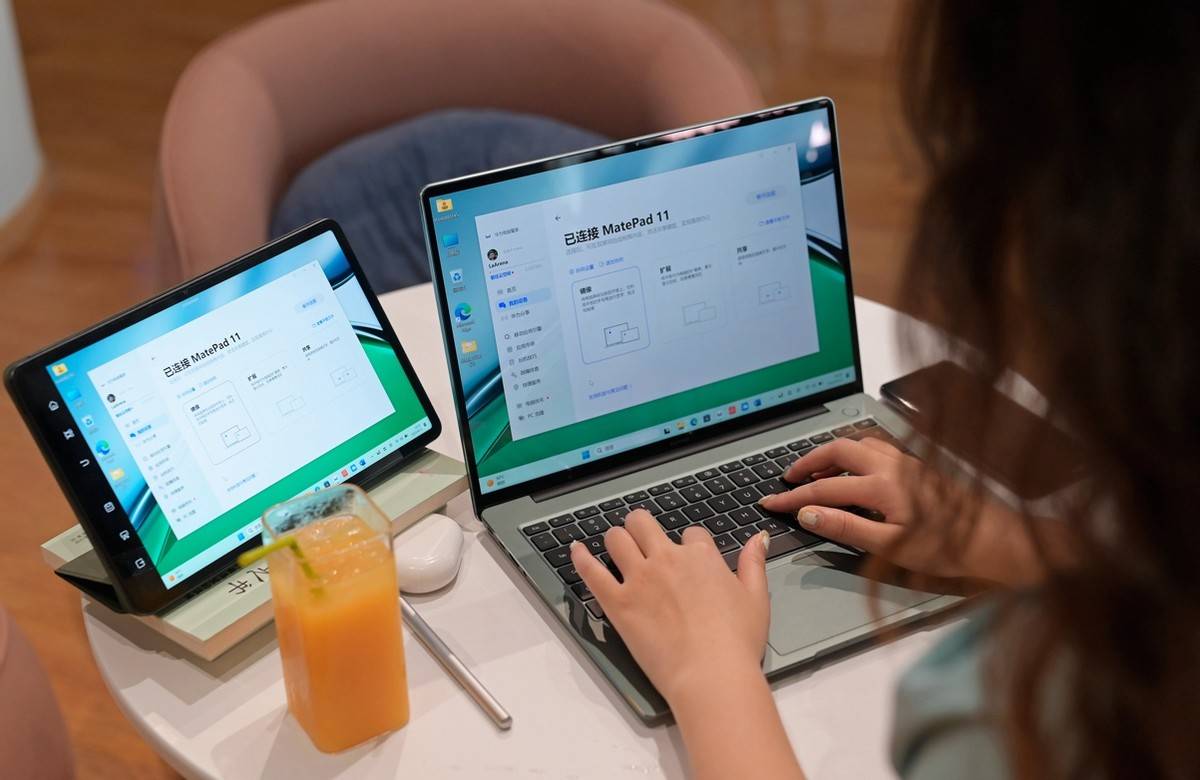 华为智慧PC+华为平板的组合,开启多屏协同后即可开启镜像、协同、共享三种连接模式。不同的连接模式下在不同的场景都可以给办公带来方便和更高的效率。平板在镜像模式下将变身PC的手绘板,PC界面实时呈现绘画情况,让你的平板不只是平板。拓展模式则满足了多人协同创作的需求,多一张屏幕工作效率也将加倍提升。共享模式支持PC和平板文件双向拖拽,在文件处理时更加灵活自如,享受便捷的学习、工作体验。而且,华为智慧PC与搭载鸿蒙4的平板、手机传文件,速度能提升50%。