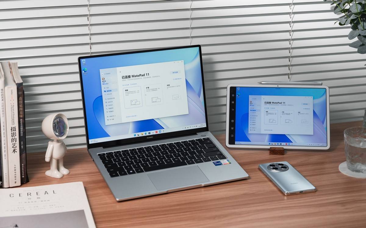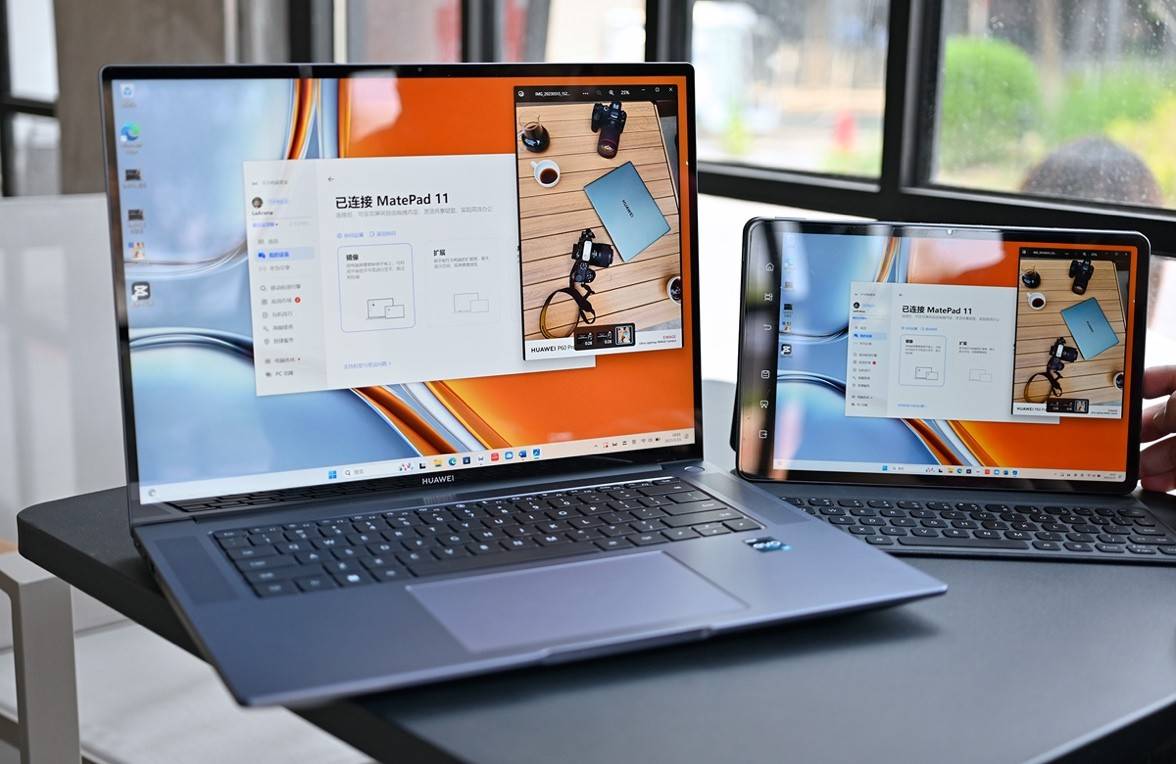 华为智慧PC通过超级终端与手机或平板“一拉即合”,实现多屏协同,即可通过PC端同时操作手机和平板。“横屏大窗口”对齐PC横屏应用体验,最多支持2个横屏大窗口+ 1个竖屏主窗口,使得手机应用也可以在PC端用大窗口进行操作,不但简单直白一目了然,而且久看不累,对视力也十分友好。多屏协同下各窗口都能自由调整大小和位置,真正实现统一窗口化管理,操作丝滑流畅。这样你就可以不用在不同设备间频繁切换,而是在一块屏幕上管理两台设备,提升专注度,也提升了效率。