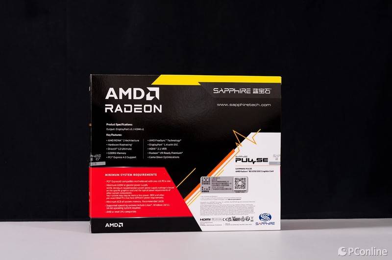 辅助供电采用仅有一个单8Pin,不过有一说一,单8Pin应对它170W的TDP绰绰有余。当然蓝宝石官方还是建议大家购买额定功率500W的80PLUS金牌电源使用的,这样才能让这款显卡满血输出。