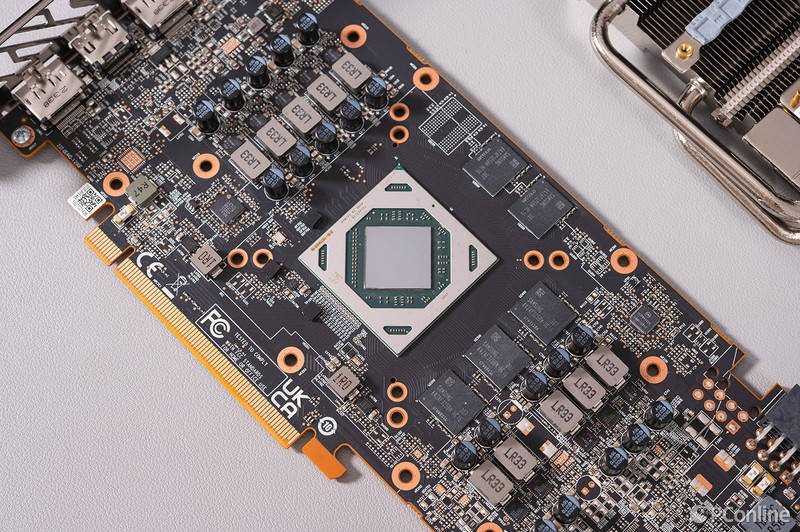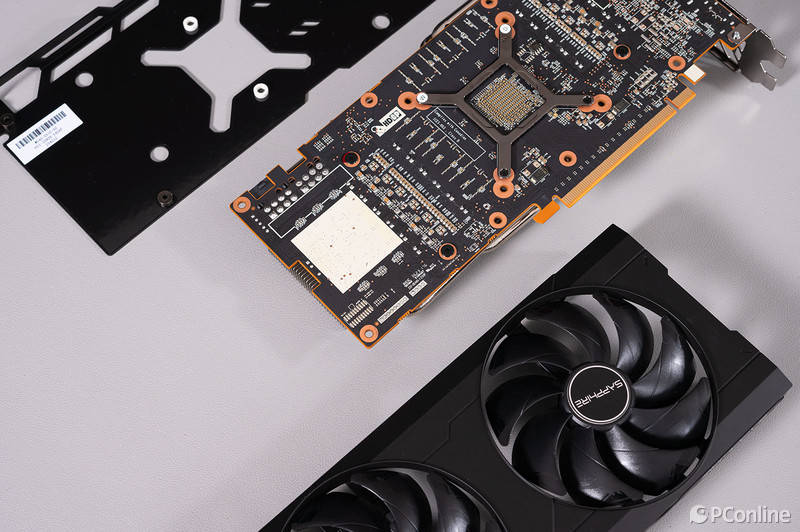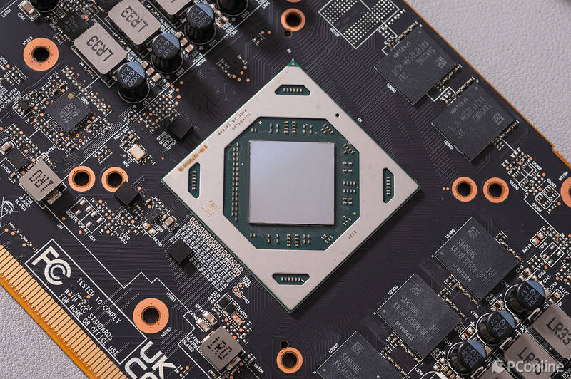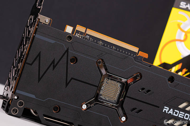另外背部上还有一个值得注意的地方,那就是X型散热鳍片固定器之下的Navi 22XL核心,这才是驱动这张性能巨兽的“心脏”。