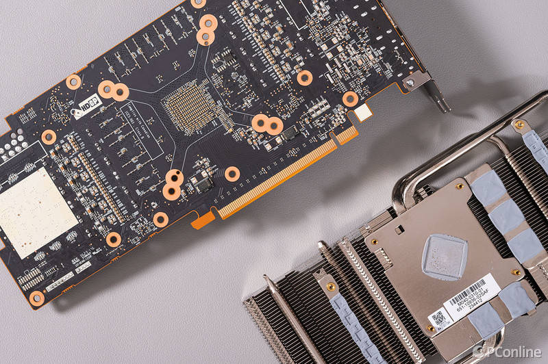 见识完精致的外观,就该看看这款显卡的内部构造了。不过这款显卡还是比较有意思的,过往的显卡是卸下背板螺丝仅可拿下金属背板,这款显卡拧下背板上的螺丝即可完成拆解PCB与散热风扇的工作。
