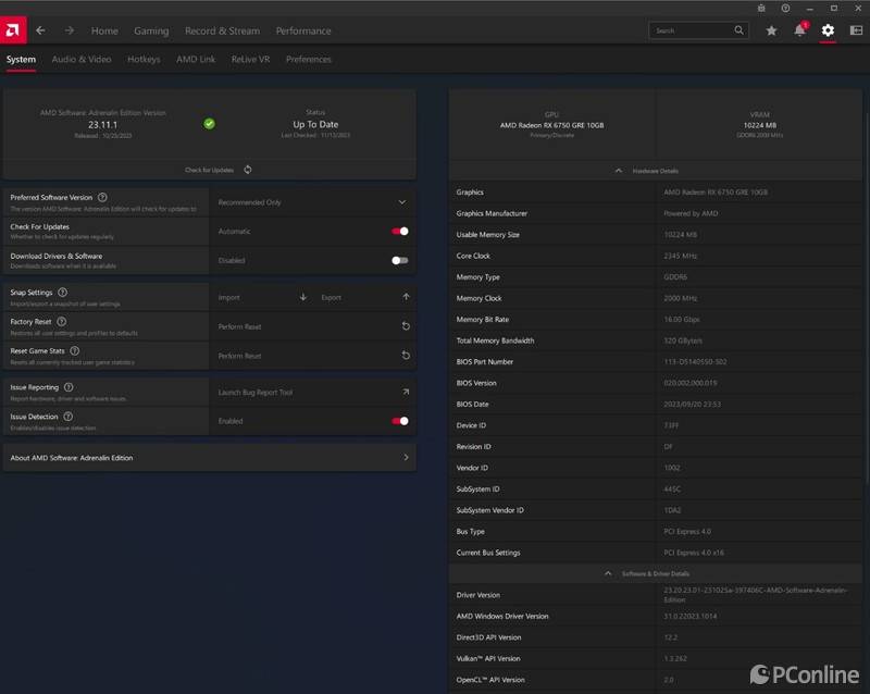 再说说这次的测试驱动,这次用的是23.20.23.01-231025a-397406C-AMD-Software-Adrenalin-Edition,这也是目前最新的驱动版本。