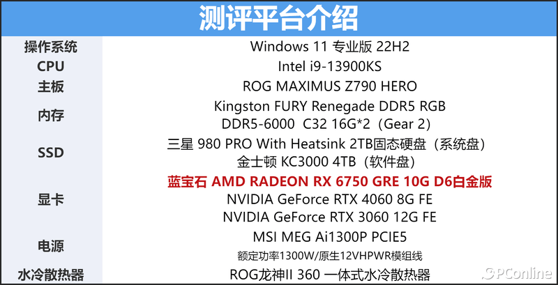 外观拆解都看完了,该介绍下本次的测试平台了。依旧使用目前旗舰级的平台,处理器为 i9-13900KS,搭配同样优秀的ROG Z790 HERO主板,方面则是两条Kingston FURY Renegade运行在DDR5-6000 C32模式下,这样平台有着更强的性能,同时稳定性也得到一定的保证。