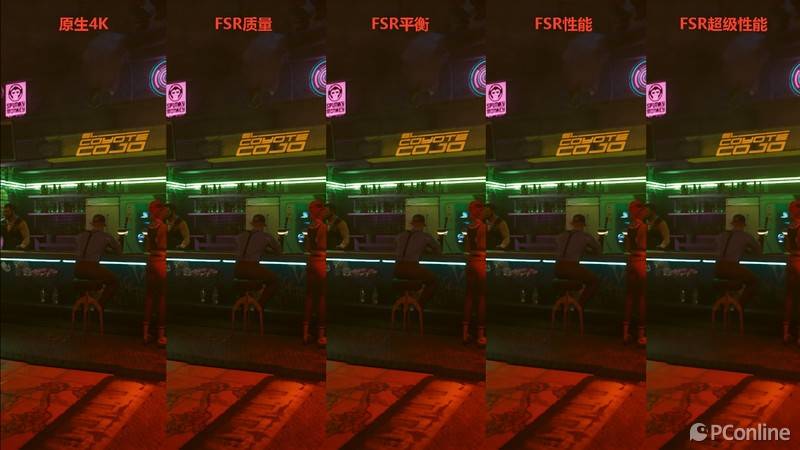 不少玩家可能担心开启FSR后画面质量会有所下降,这里我们也截取了不同档位中的游戏画面,从肉眼来看,其实画质几乎完全一样。如果是文字、图案等场景下,由于FSR是通过AI将低分辨率画面渲染成高分辨率画面,因此在清晰度方面还有加成,有时候甚至比原生画质还要清晰。