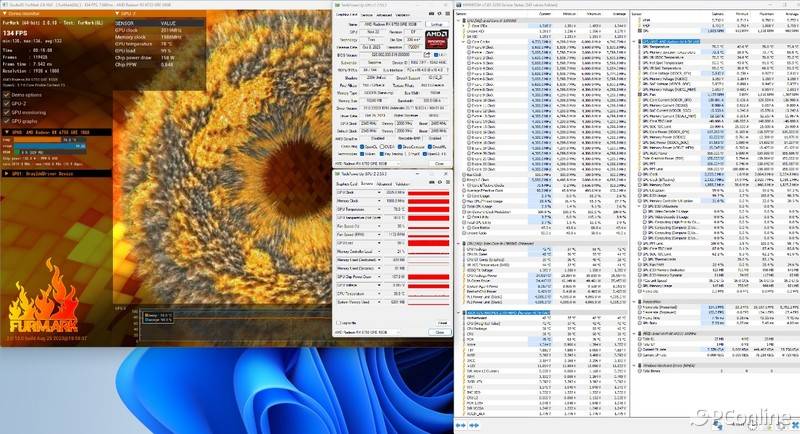 最后是功耗与温度测试,在室温20°的环境下,Furmark甜甜圈设定为1920 x 1080分辨率。在烤机15分钟后,蓝宝石RX 6750 GRE 10G D6白金版的核心频率能够稳定在2025MHz,满载功耗不到160W,甚至还没到TDP的170W,就拿这个表现,日常使用简直就是轻轻松松!