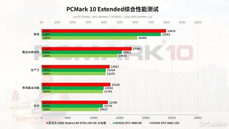 实测下来,蓝宝石RX 6750 GRE 10G D6白金版的表现不仅远远胜过RTX 3060,RTX 4060 也难以望其项背。单从结果上看,在常用基本功能、数位内容创作以及游戏三个方面,新显卡可谓火力全开,领先RTX 3060非常多,最高差距可以去到30%,对比RTX 4060也有不错的表现,平均性能能够领先10%以上。可以说这款显卡从理论到游戏,从游戏到日常使用都相当出色,绝对是现阶段主流玩家最值得选购的显卡之一。