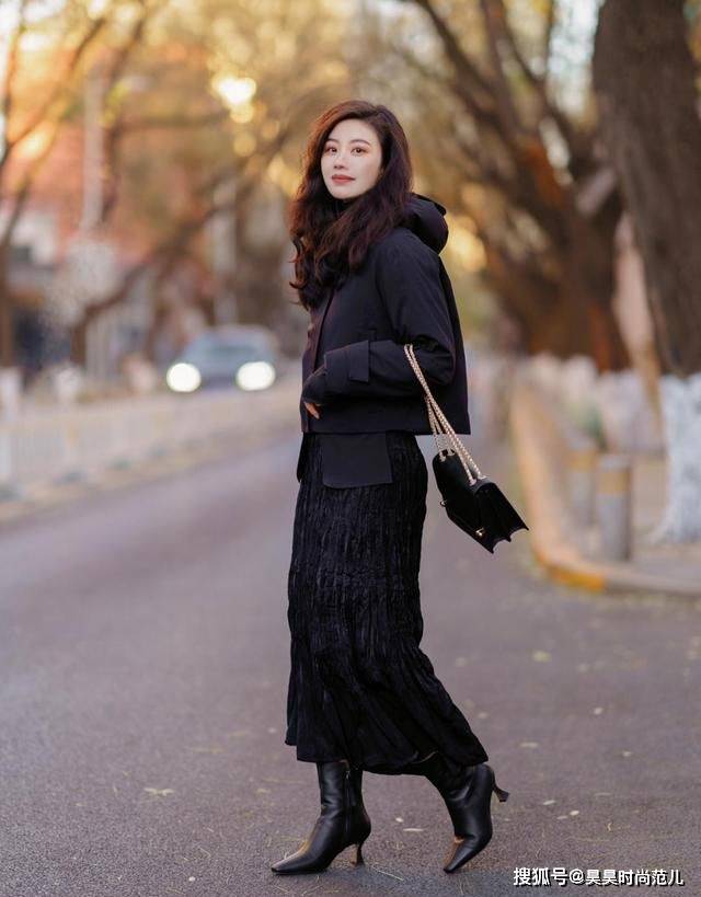 还有就是黑色属于低调沉稳的深色系,所以在穿搭上面更容易凸显其成熟稳重的魅力。也正因为如此,黑色羽绒服对于年龄也没有什么限制,基本上适合全龄段人群选搭,简单时尚又不失高级韵味儿。