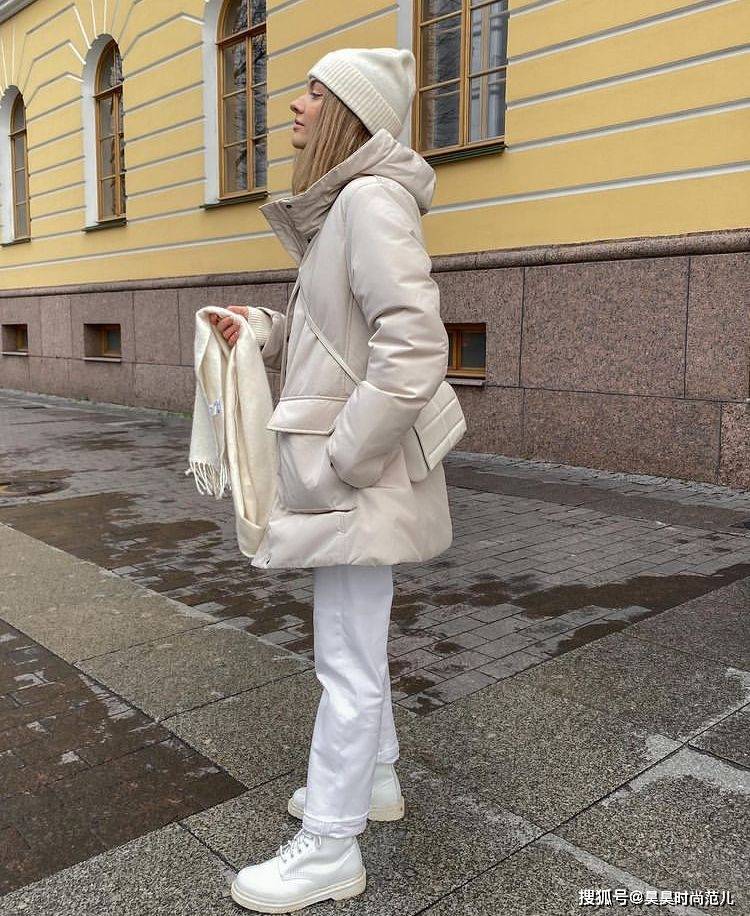 当然,白色羽绒服也是不挑年龄的冬日时尚单品,它既可以穿搭出清新可人的美少女感,也可以穿搭出成熟稳重的贵妇感,并且随便搭配就可以高贵大方。