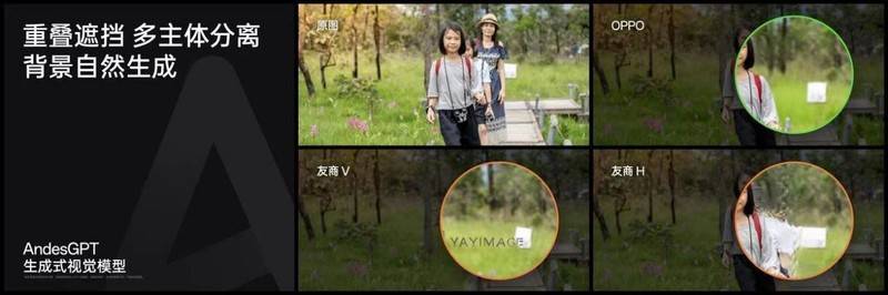 来到2023年,AI在图像上同样有长足的发展。最近OPPO的AI大模型也正式发布,根据发布会介绍,OPPO在拍照算法中也巧妙地融入了大模型,例如在抠图中,利用生成式视觉模型做更好的语义分割,不但分割精度高至发丝级,而且最多可以支持 6 个主体的分割与提取,利用大模型的绘图重建能力,智能消除图片中的路人与杂物,获得更好的拍摄效果;并且能够针对超大面积图像进行填充和生成,甚至可以完美的生成图片中的自然光影。让AI辅助后期的编辑,曾经复杂专业的工作也会变得亲民,让用户的拍照体验大大提升。