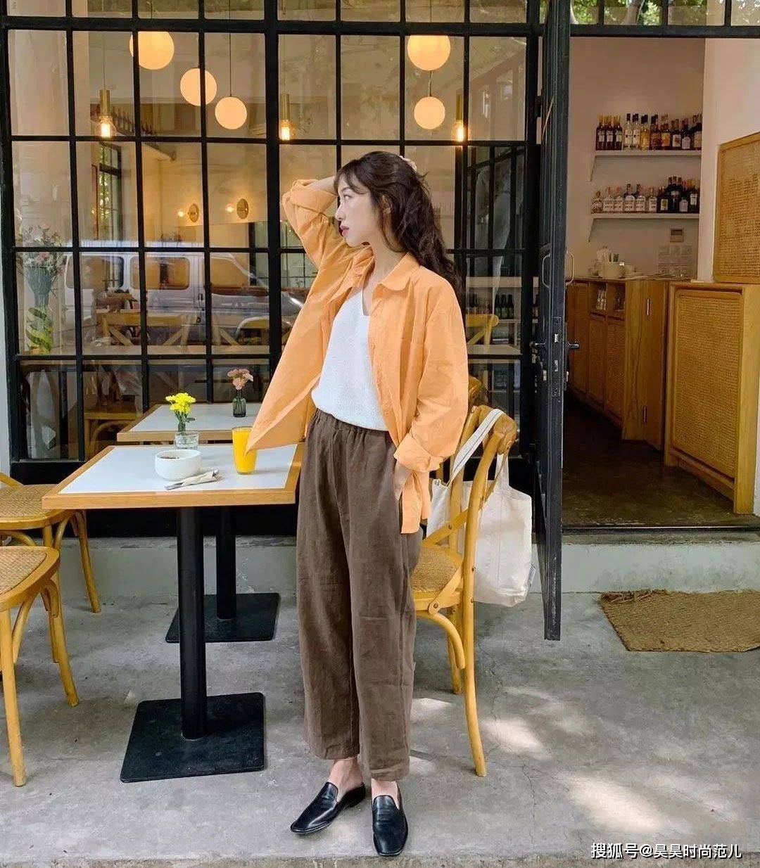 比如上面这身黑色的衬衫,搭配棕色的高腰奶奶裤穿搭,神秘的黑色系衬衫,穿搭起来本就多了几分成熟稳重,显得大方优雅超显气质。这个时候下面再搭配一条宽松的高腰奶奶裤穿搭,高腰显瘦的裤型设计,配合黑色的衬衫,简单休闲的穿搭方式,女人味儿十足。