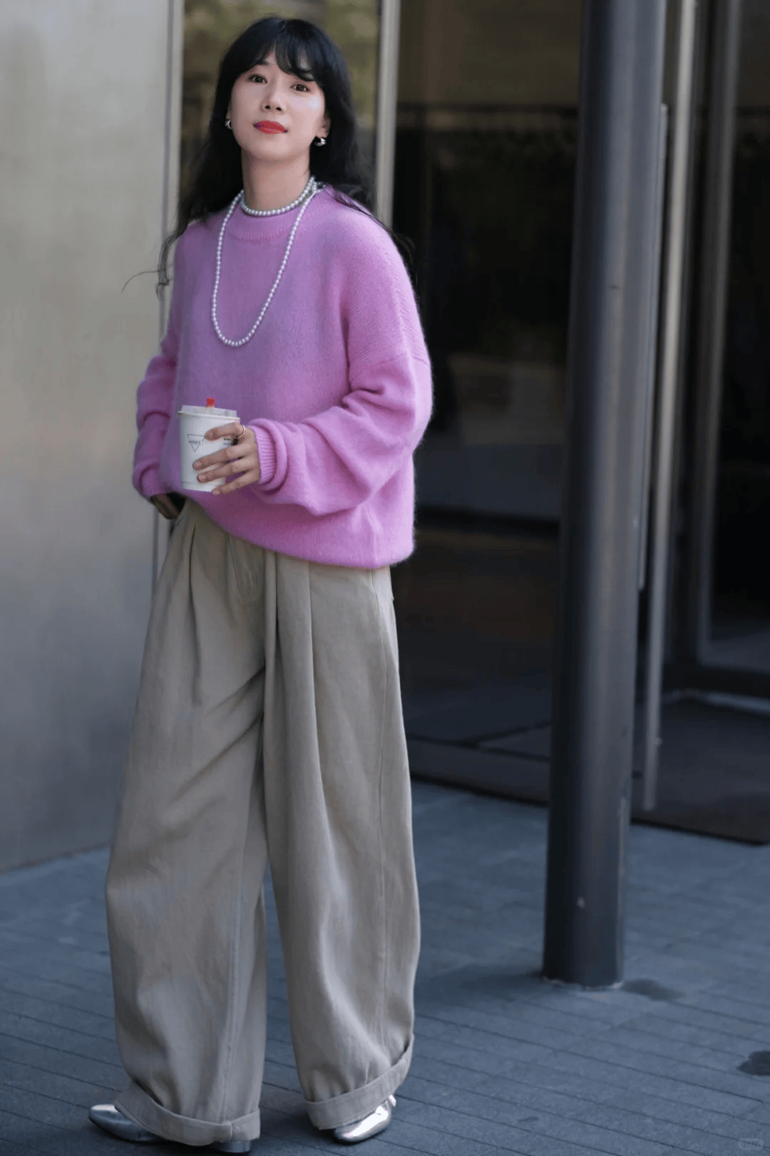 而对于希望展现温柔气质的女性而言,粉紫色系无疑是最佳选择。无论是粉紫色的针织衫还是连衣裙,都能让人感受到一股淡淡的暖意与甜美。这样的色系,不仅能够提升整体造型的层次感,还能让穿着者看起来更加年轻有活力。