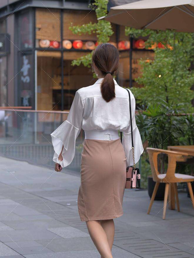 白色的短款上衣搭配卡其色的半身裙,休闲时尚的同时还带有一丝职业装的感觉,通常职业装都是很显气质的,所以选择这种搭配也是个很不错的选择。