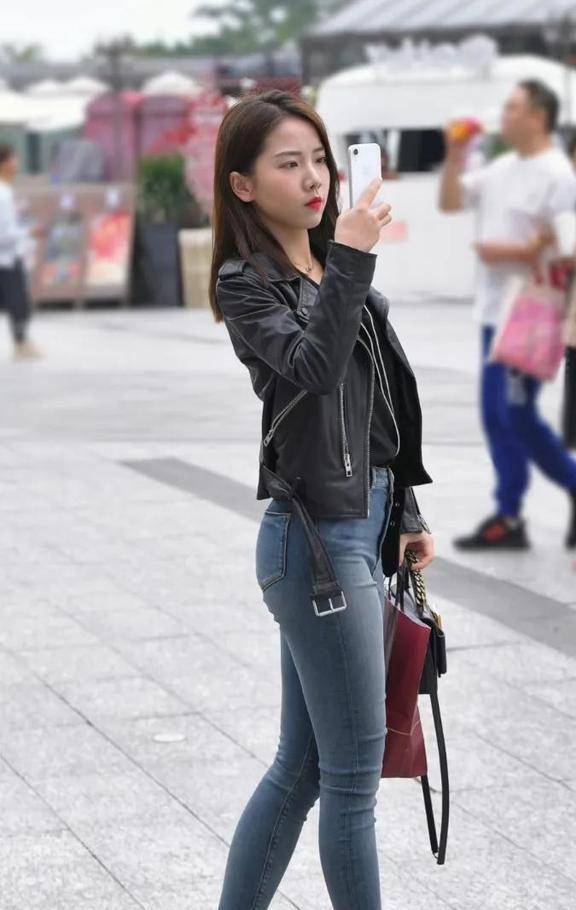小姐姐用一款高腰的紧身牛仔裤来搭配这件深绿色上衣,她选择的这款牛仔裤也是深色的,和上衣看起来就非常的和谐统一,不会给人造成视觉上的冲击,上衣V字领的设计露出精致的锁骨,非常性感大方,而裤子紧身的设计也是性感精致,干练时髦。