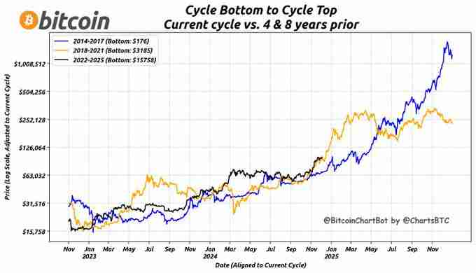 1.比特币当前的价格走势与过去的周期高度相似,这让我们有理由相信历史可能会重演。